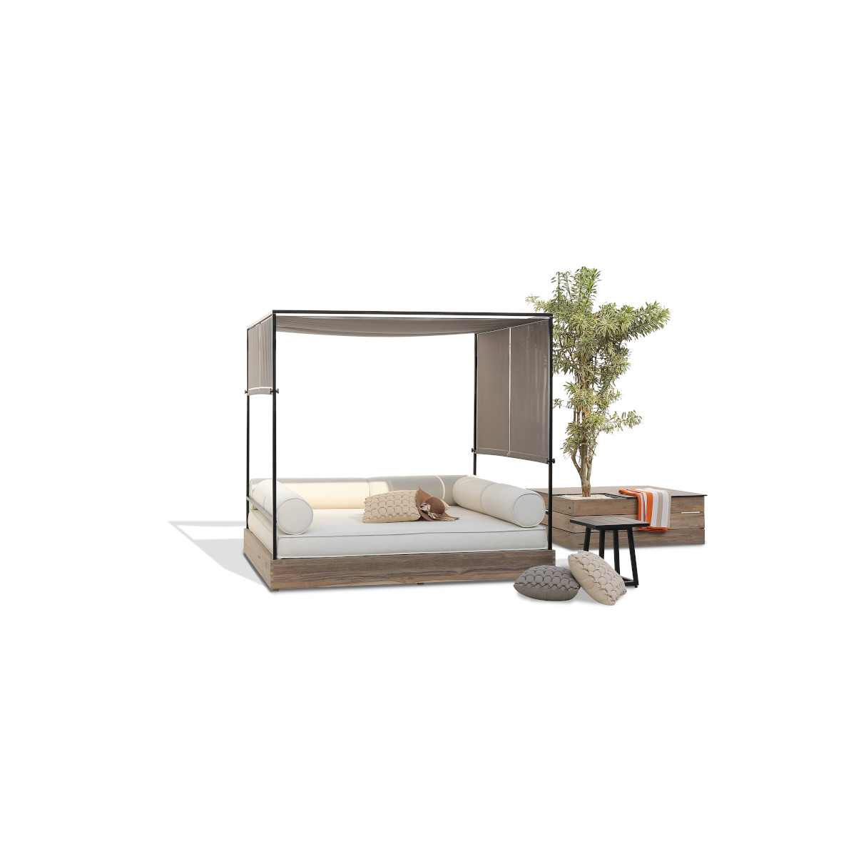 Unwind and feel the stress melt away on the luxurious AIKO Daybed. Luxury Outdoor furniture with sustainability in mind.