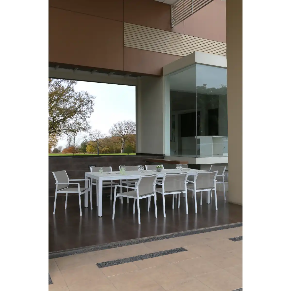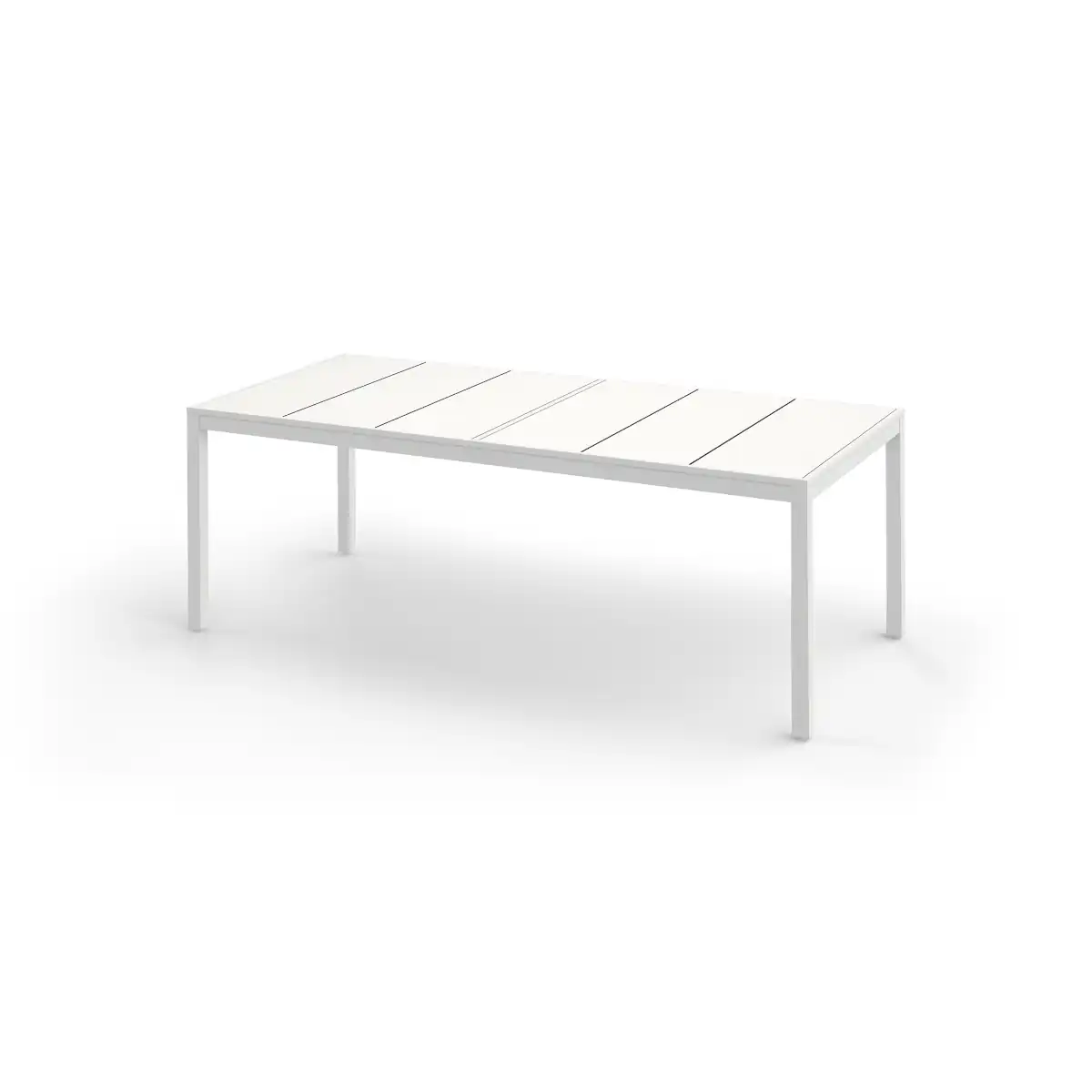 ALLUX dining tables are highly practical, easily customized outdoor seating solutions. High pressure laminate (HPL) Italian tops bring a very sleek, contemporary look; as well as being very easy to clean and maintain. This is the medium size. Seats 4-6