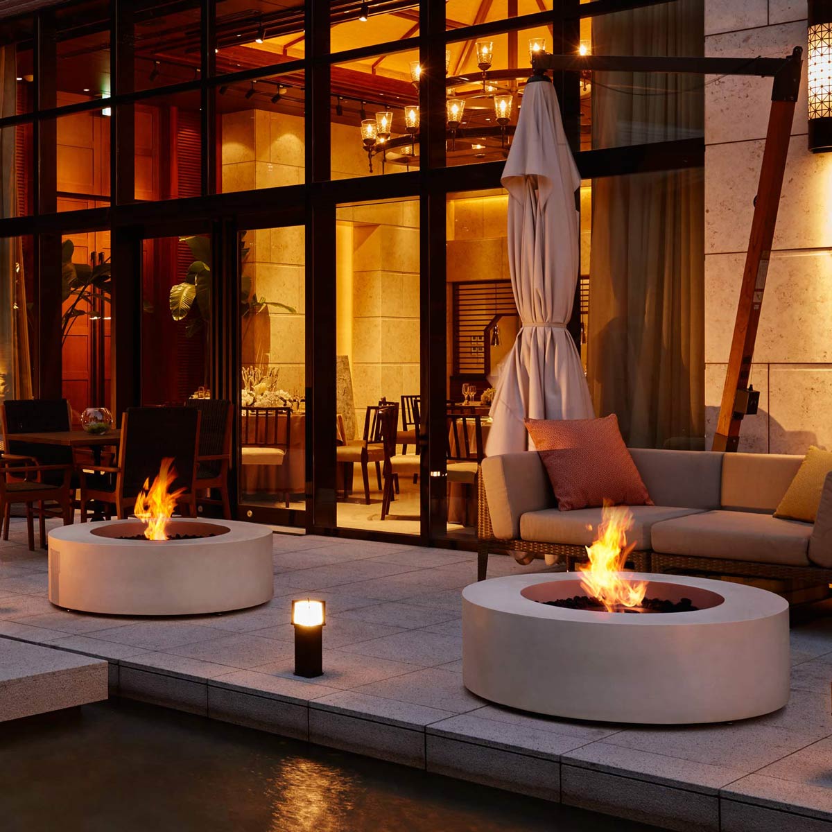 Available in three artisan concrete finishes, the Ark 40 centerpiece fire table blends effortlessly with contemporary, coastal, modern, or rustic design styles. Its low-profile silhouette creates a balanced, sculptural focal point, while the efficient burner delivers clean-burning flames for comfortable year-round enjoyment and satisfaction. Choose bioethanol for a portable, smoke-free setup, or pair with accessories such as glass fire screens, cover plates, and all-season protection to customize your experience.