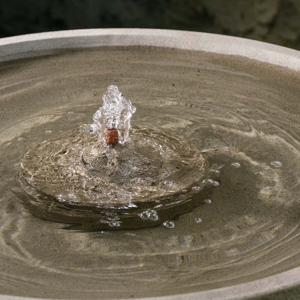 The Aspire Fountain water feature has a broad bowl with a central bubbler that will appeal to birds and humans alike. Set this modern fountain amidst small garden shrubs and plantings or position it at the end of path as a focal point. Crafted from durable cast stone, it is available in a wide array of finishes.