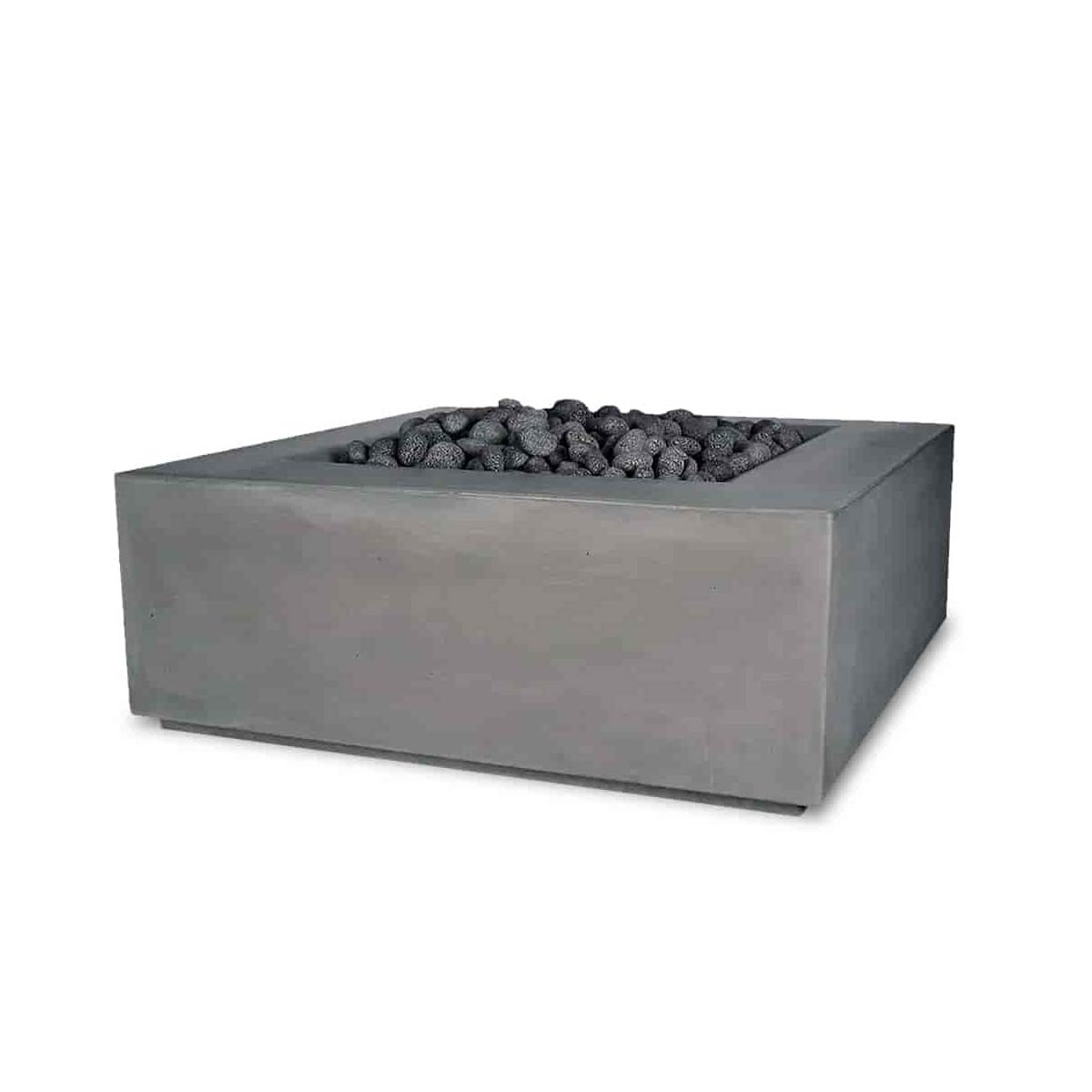 The Aura Square Fire Table has a beveled fire media basin that creates a reflective aura when lit, offering a cozy atmosphere for outdoor seating. It comes in a variety of finishes and features a broad 7in edge that doubles as a table surface.