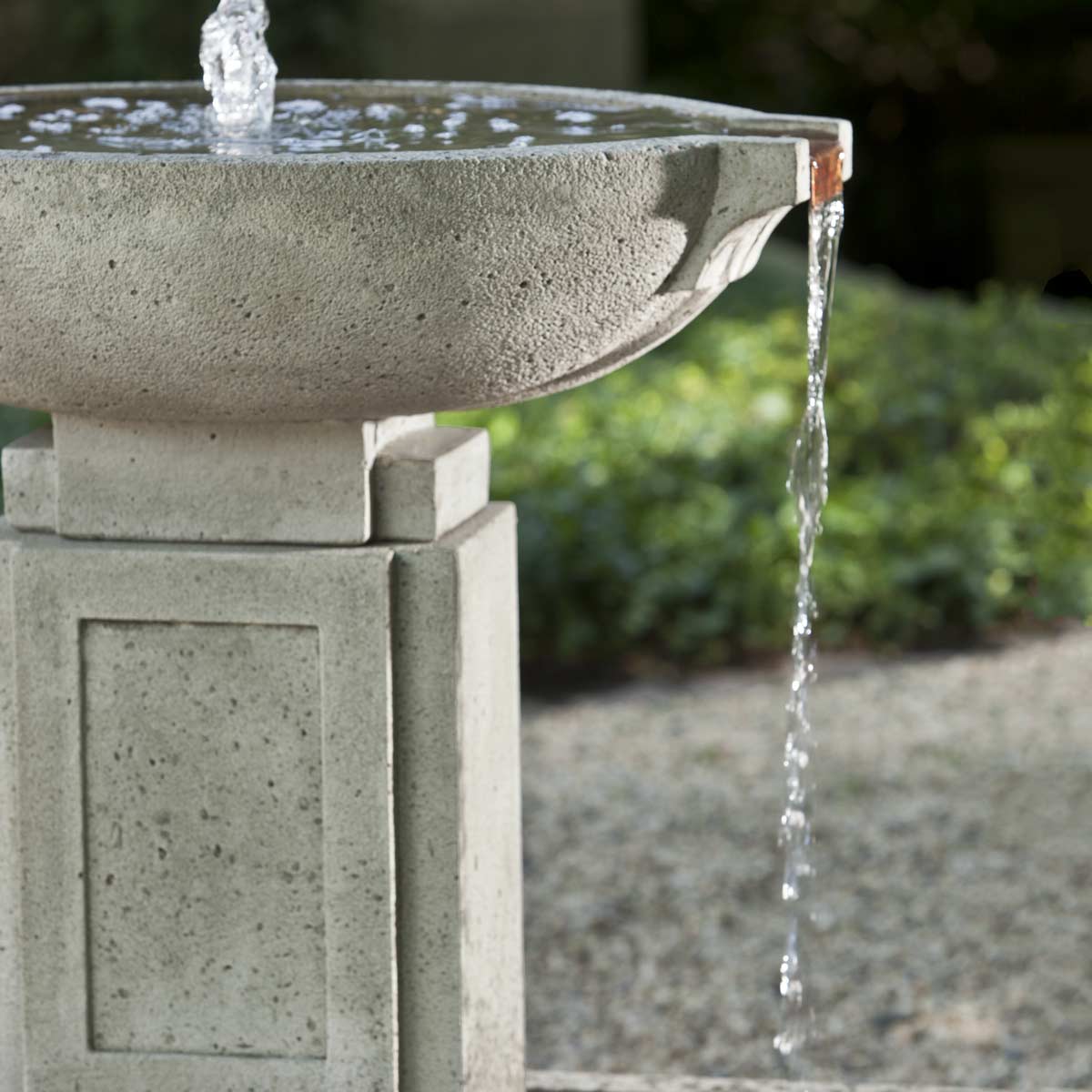If you are looking to maximize the sound coming from your outdoor fountain, then the Austin Fountain would be good to consider. Water spills over both sides of the water feature element into a large linear basin below.