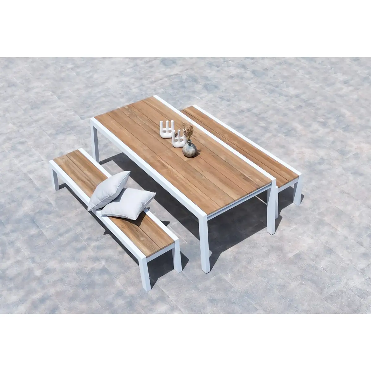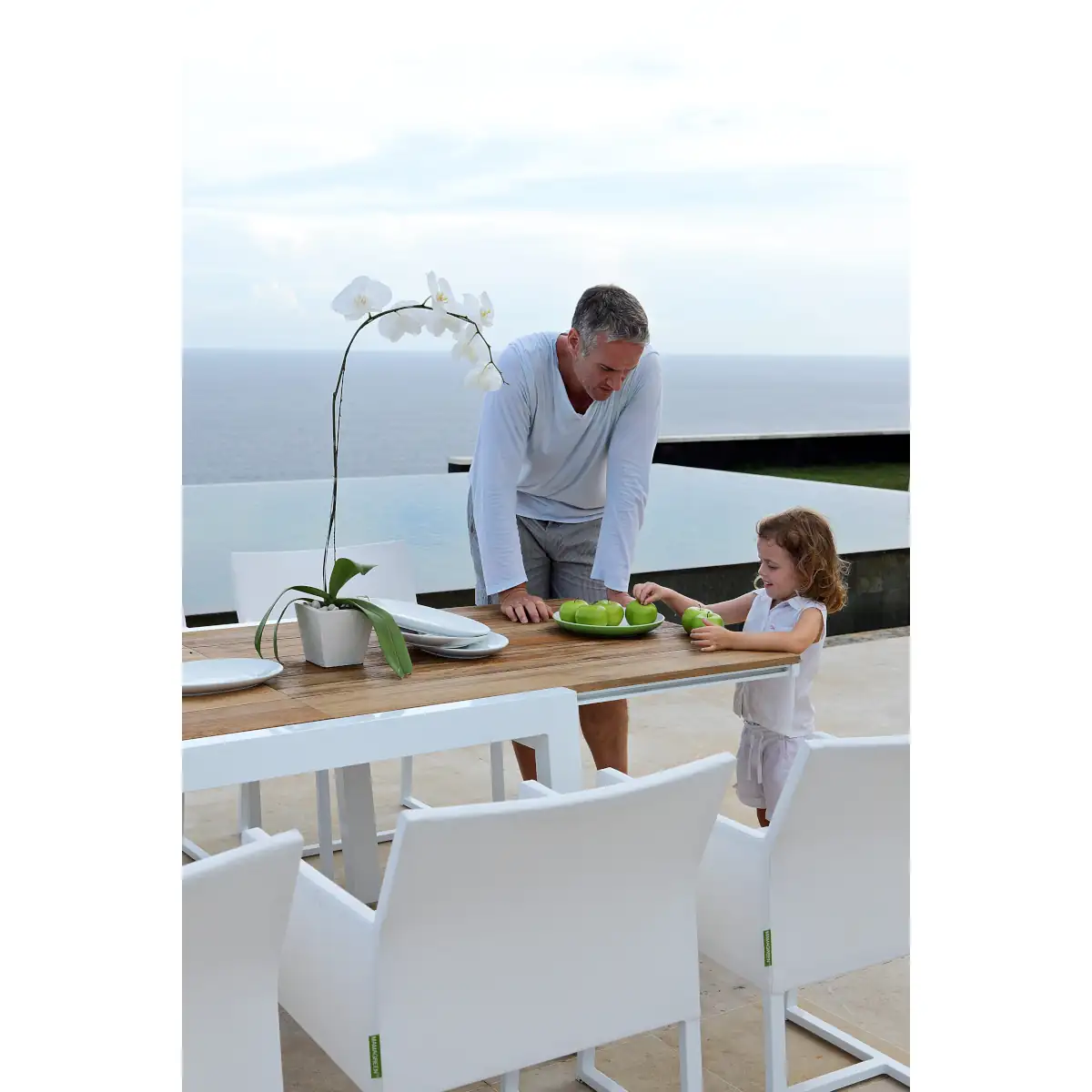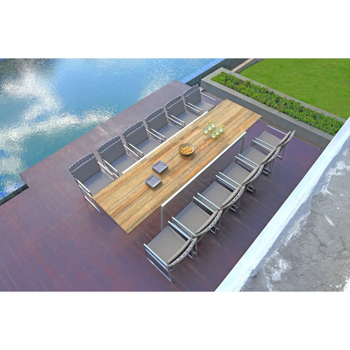 Able to accomodate 12 people more than comfortably, this brushed, recycled teak and powder coated aluminum dining table easily extends from 90.5″ to 141.5″ in a moment. BAIA Extension table 90.5″ can be combined with BAIA bench 80.5″