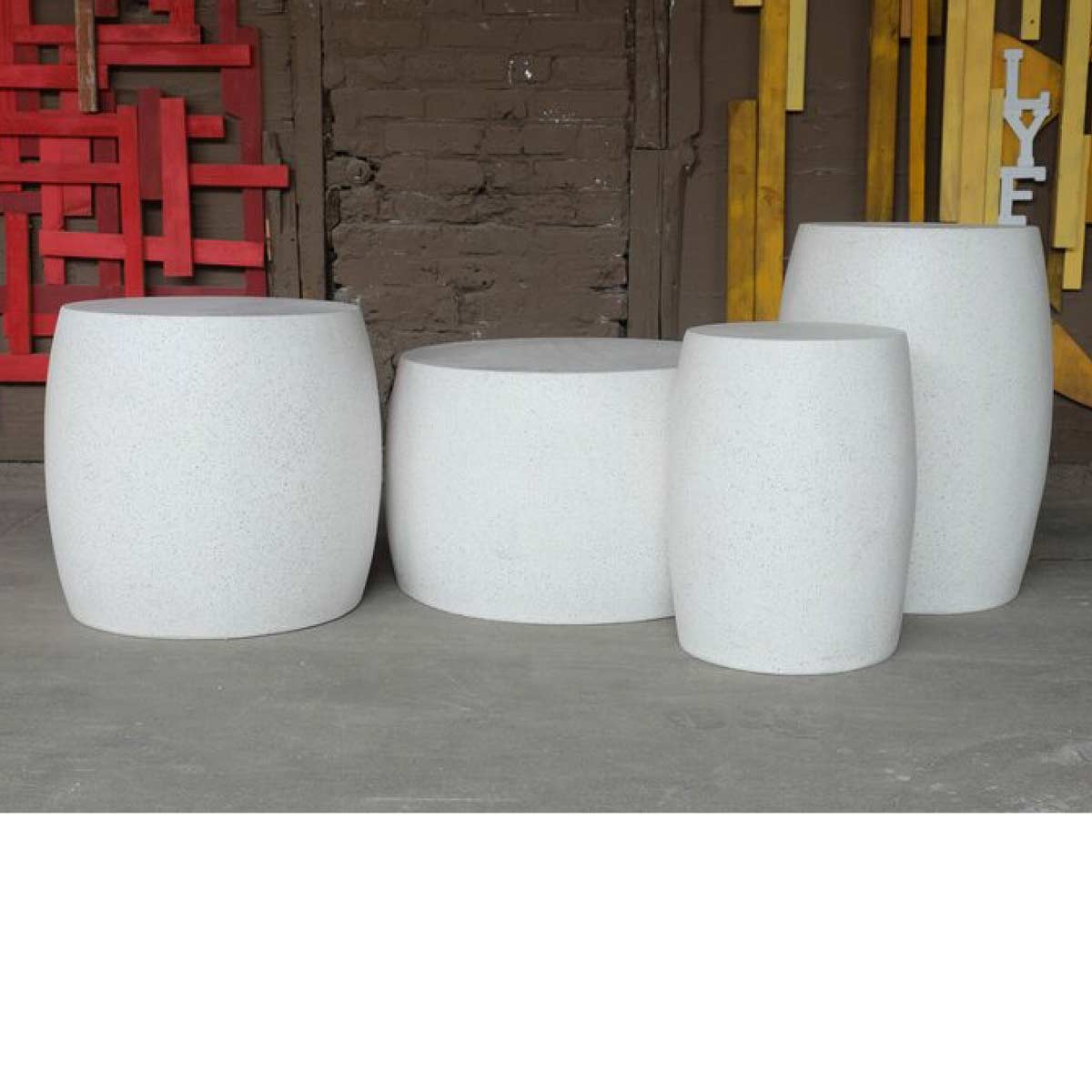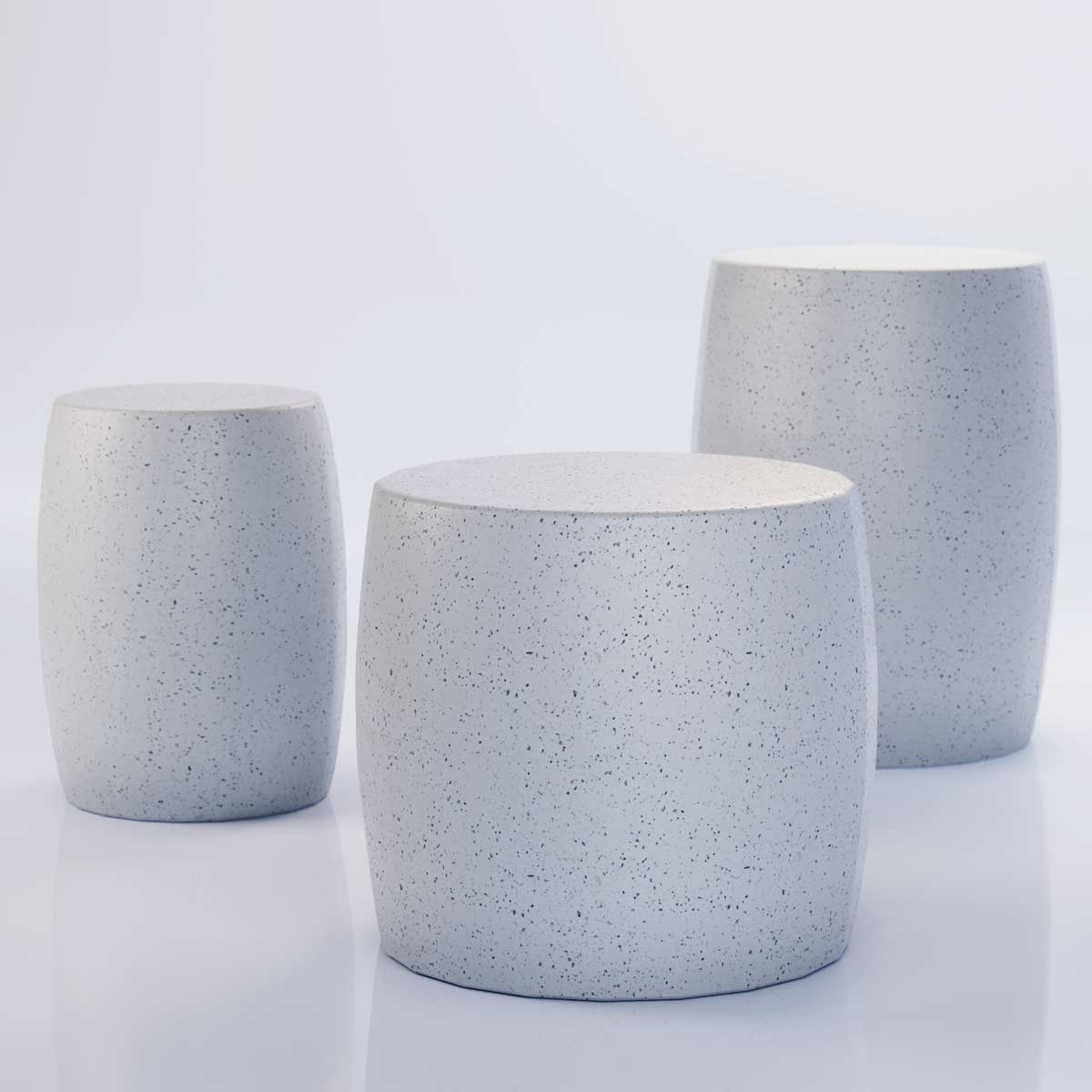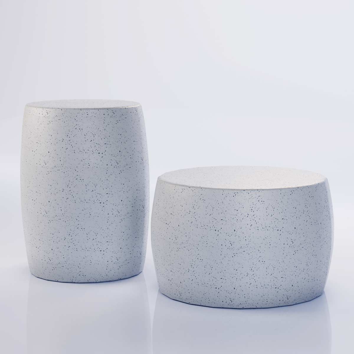 Comprising simple yet modern forms, our Barrel Tables and Stools are practical and multi-purpose outdoor furniture pieces that will serve whatever need you require. Place them alone or in groups for visual interest. Available in four size options and five finishes, they are handcrafted from lightweight cement-look fiberglass resin and aggregate.