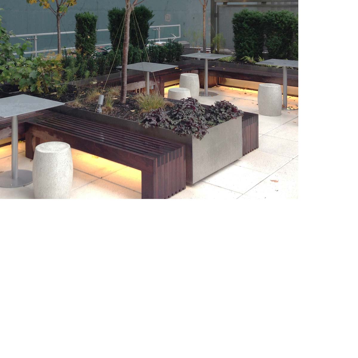 These Fiberglass resin and aggregate outdoor pieces are some of the lightest concrete-like furniture on the market.
