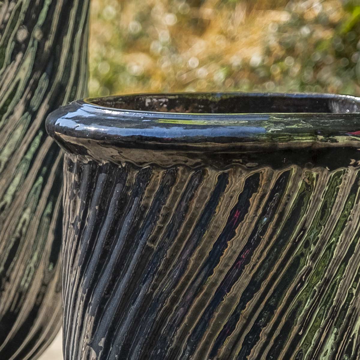 Available in three glaze finishes, the set of two Beausoleil Planters feature a swirling pattern that creates a striking visual effect. These terracotta urn containers have a drainage hole in the base and offer a practical option for a wide variety of planting styles.