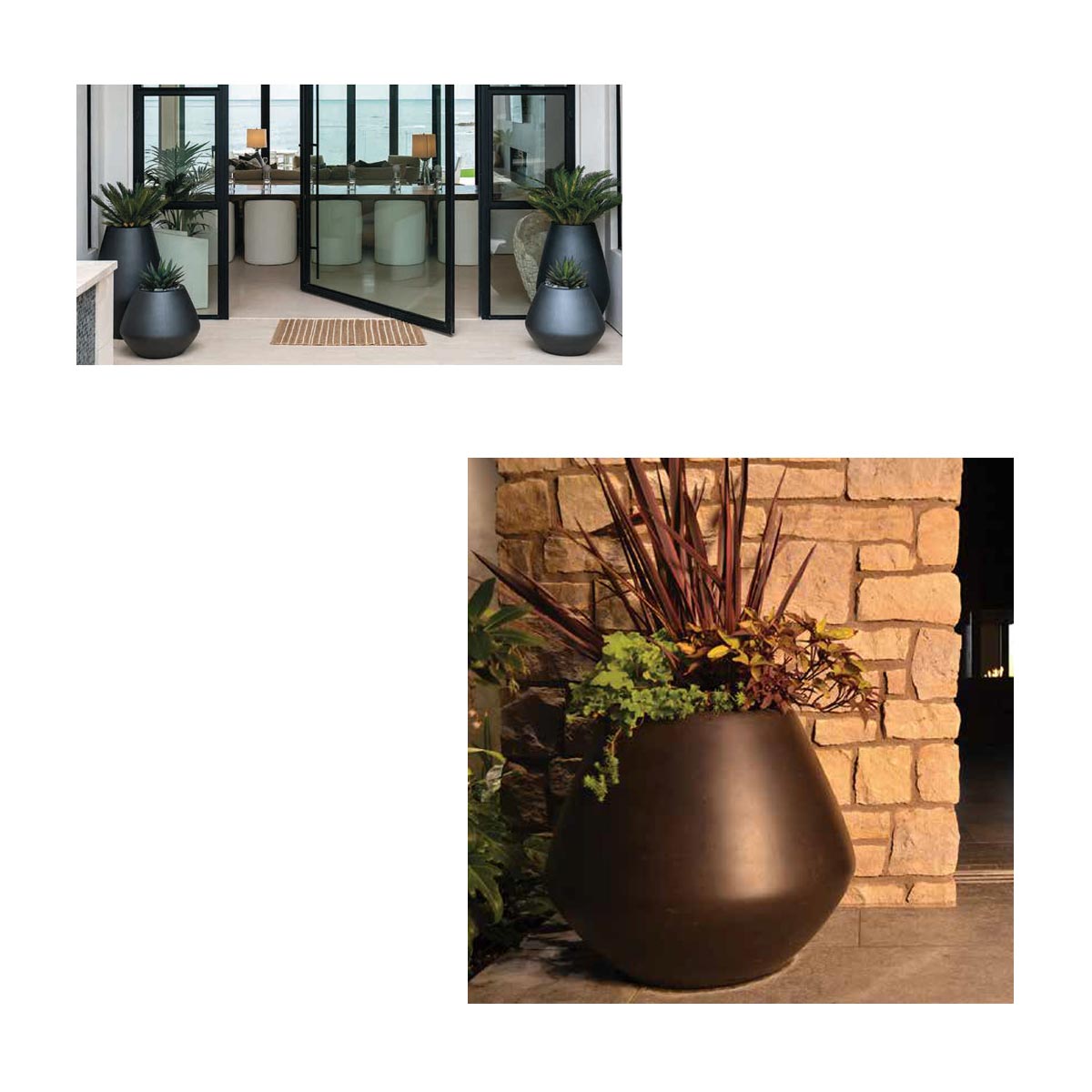 Sleek and modern, the Belize Urn Planter offers a stylish accent for contemporary garden spaces. Its retro shape comes in four sizes and is an ideal container for deeper rooting plants. Handcrafted from lightweight GFRC, choose from a wide array of finish options to enhance your landscape. The Belize Planter Family includes two other container shapes.