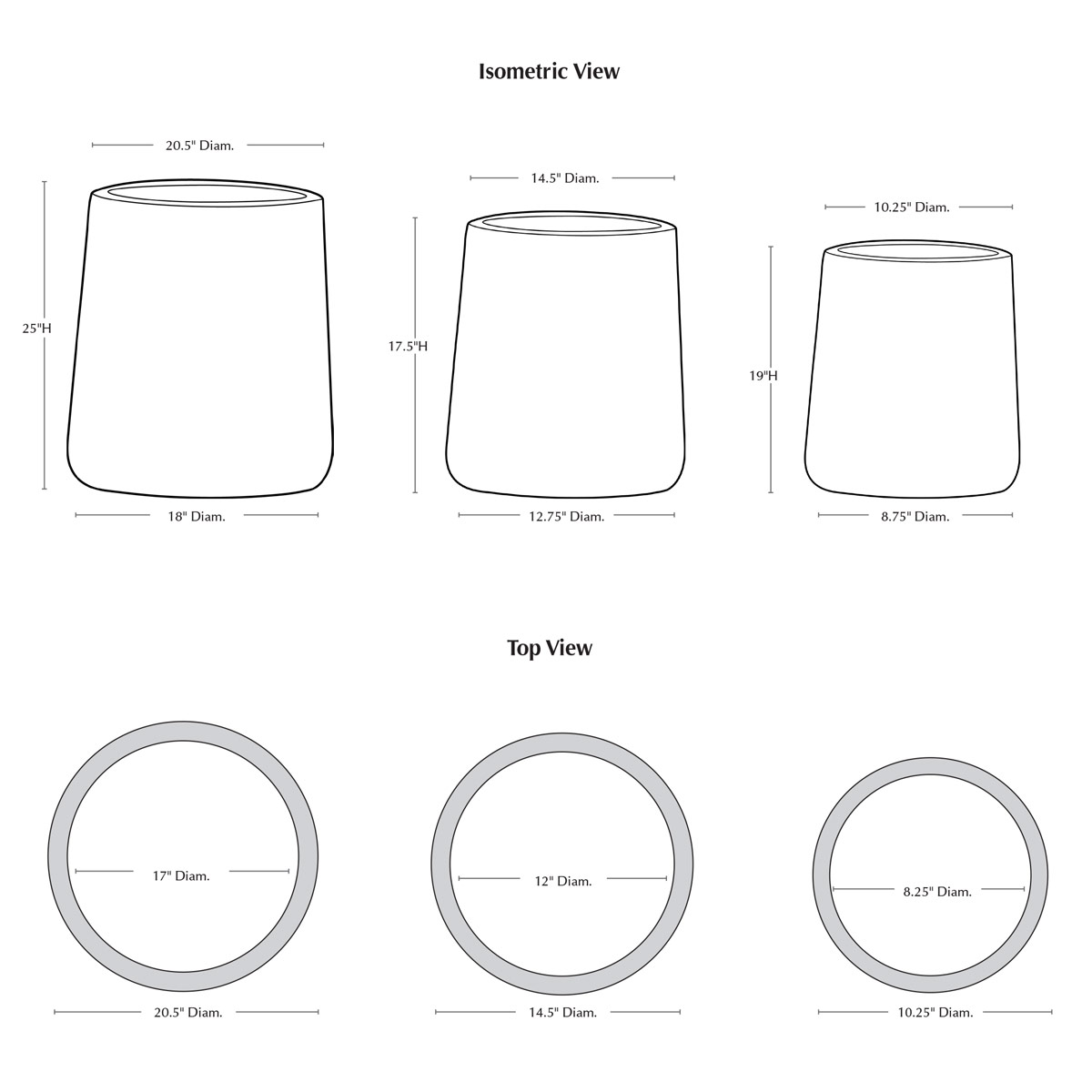 | Size | 20.5"DIA. x 25" H | 103 lbs 14.5"DIA. x 17.5" H | 41 lbs 10.25"DIA. x 12.5" H | 19 lbs |