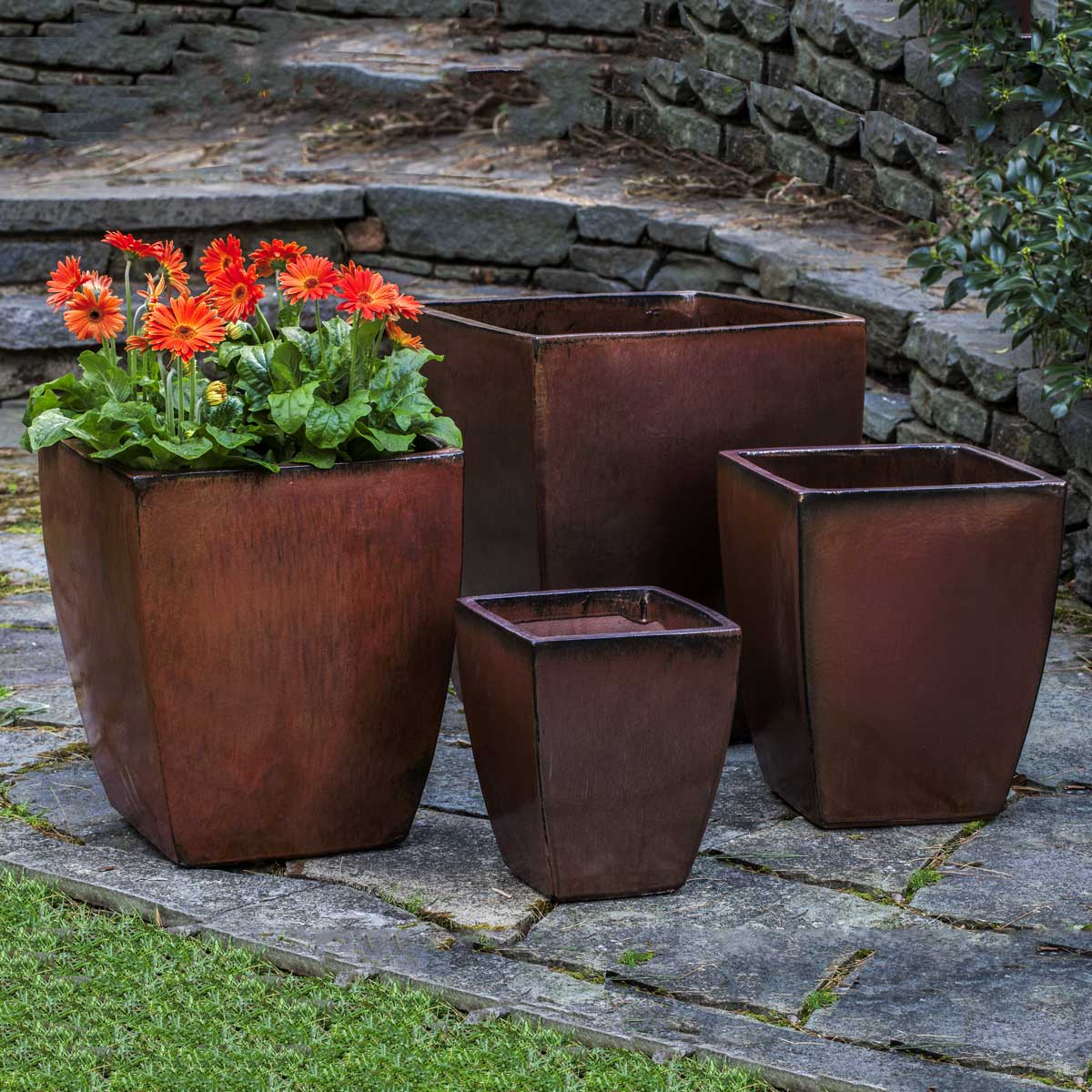 The artisanal process and traditional kilns used to manufacture our handmade and hand-glazed containers create planters of unique beauty and character. This traditional craftsmanship offers a rich variety of textures, colors and finishes which will enhance any contemporary or traditional design project. Additionally, most of our outdoor glazed pottery can be used in the design of custom water features. For quality control, these natural clay planters are rigorously tested in freeze-thaw conditions. Our Glazed and Terra Cotta pottery is appropriate for use indoors and outdoors with proper planting and care in regions where freeze-thaw cycles exist.
