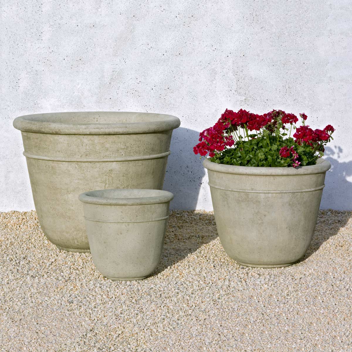 The cast stone Carema Planters have a classic shape that lends itself to both contemporary and traditional garden spaces. Available in four different sizes and many finishes, they’re a great option for planting all of your favorite shrubbery or flower specimens.