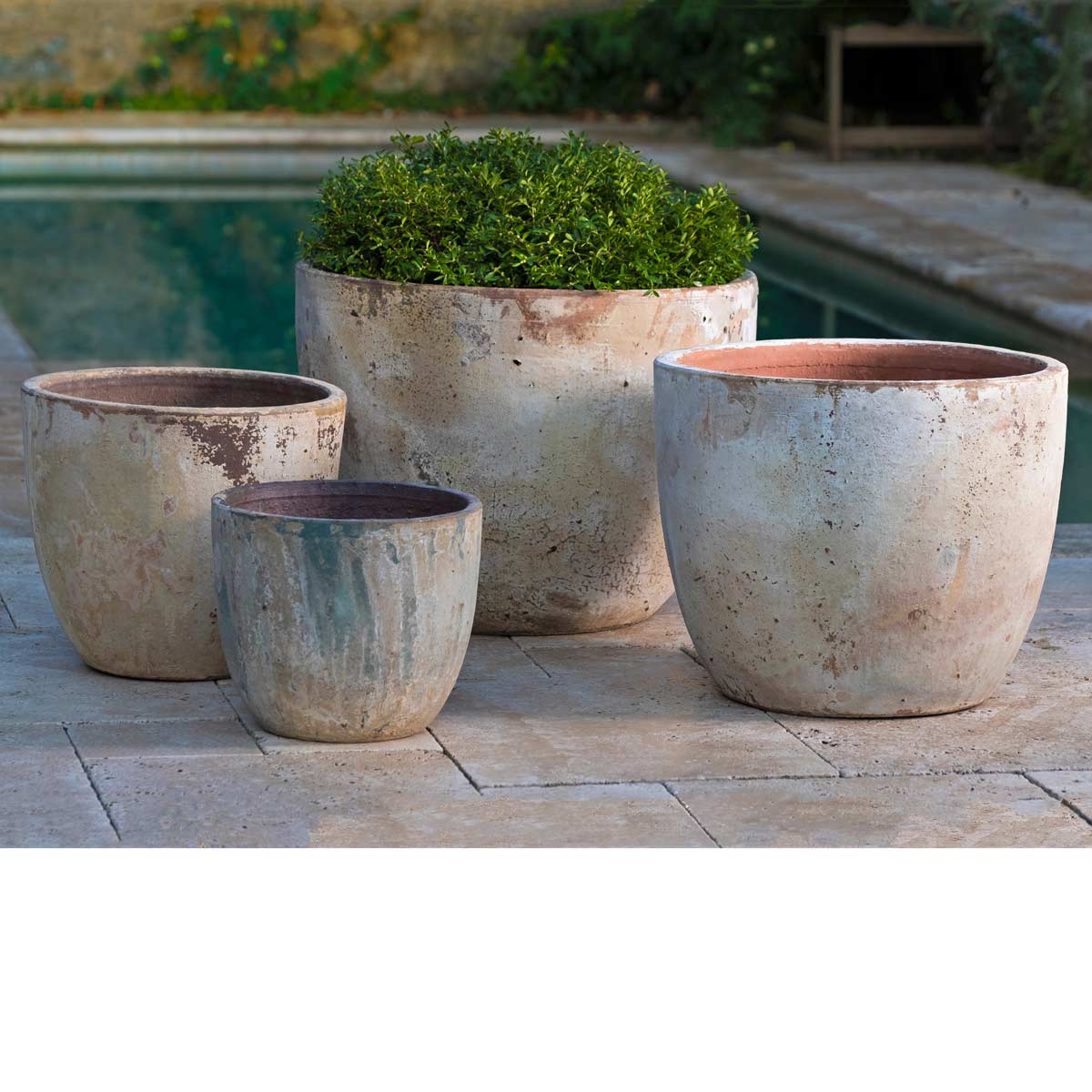 The artisanal process and traditional kilns used to manufacture our handmade and hand-glazed containers create planters of unique beauty and character. This traditional craftsmanship offers a rich variety of textures, colors and finishes which will enhance any contemporary or traditional design project. Additionally, most of our outdoor glazed pottery can be used in the design of custom water features. For quality control, these natural clay planters are rigorously tested in freeze-thaw conditions. Our Glazed and Terra Cotta pottery is appropriate for use indoors and outdoors with proper planting and care in regions where freeze-thaw cycles exist.