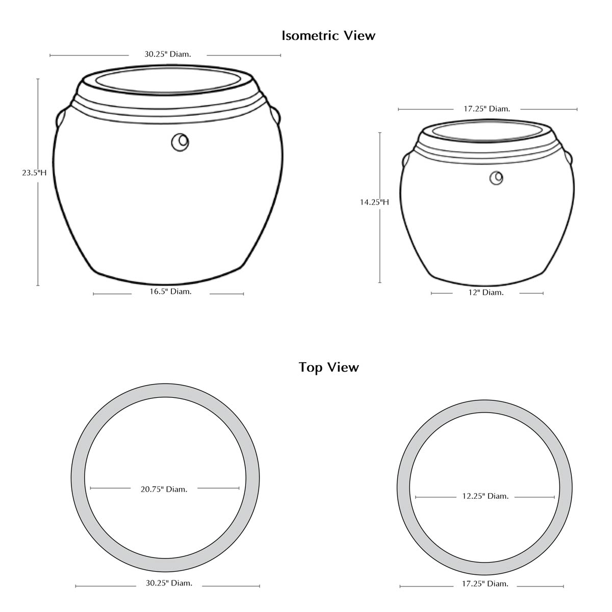 | Size | Set of 2 30.25"DIA x 23.5"H | 142 lbs 17.25"DIA x 14.25"H | 57 lbs |