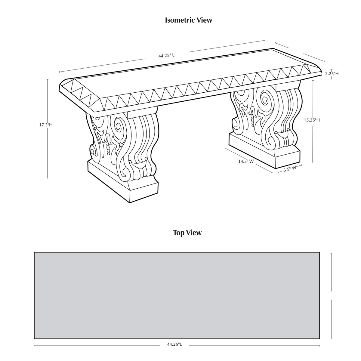 | Size | 44.25"L x 16.5"W x 17.5"H | 268 lbs |