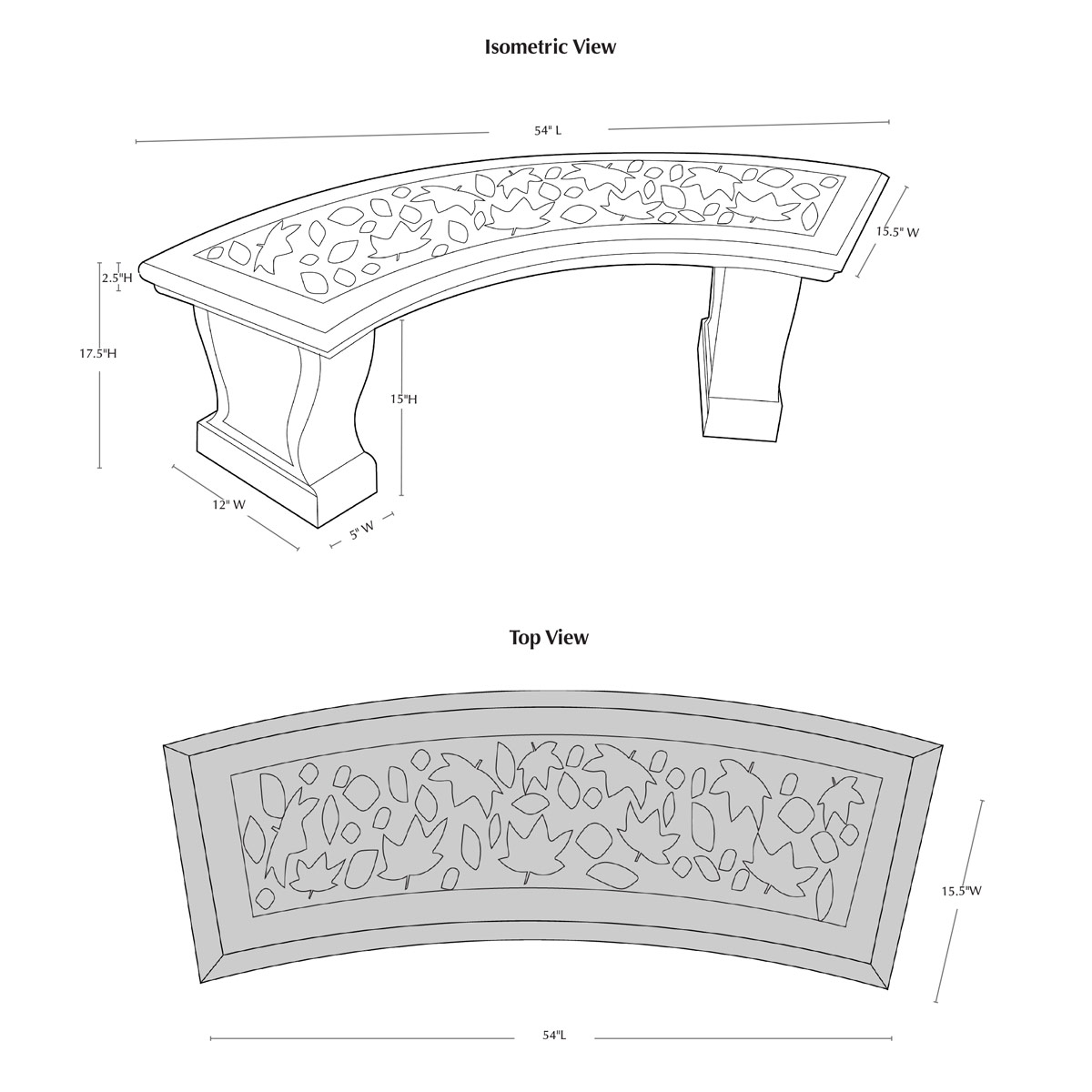 An ode to the natural environment, stamp pattern detailing elevates the traditionally styled Curved Leaf Bench. This attractive outdoor seating piece is crafted from cast stone, and comes in a variety of finishes.