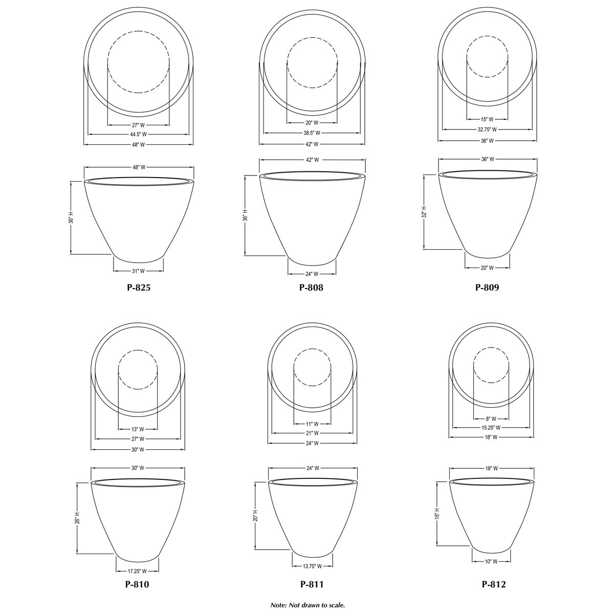 | Size | 24″DIA x 20″H | 145 lbs 30″DIA x 26″H | 295 lbs 36″DIA x 32″H | 495 lbs 42″DIA x 36″H | 615 lbs 48″DIA x 36″H | 775 lbs |