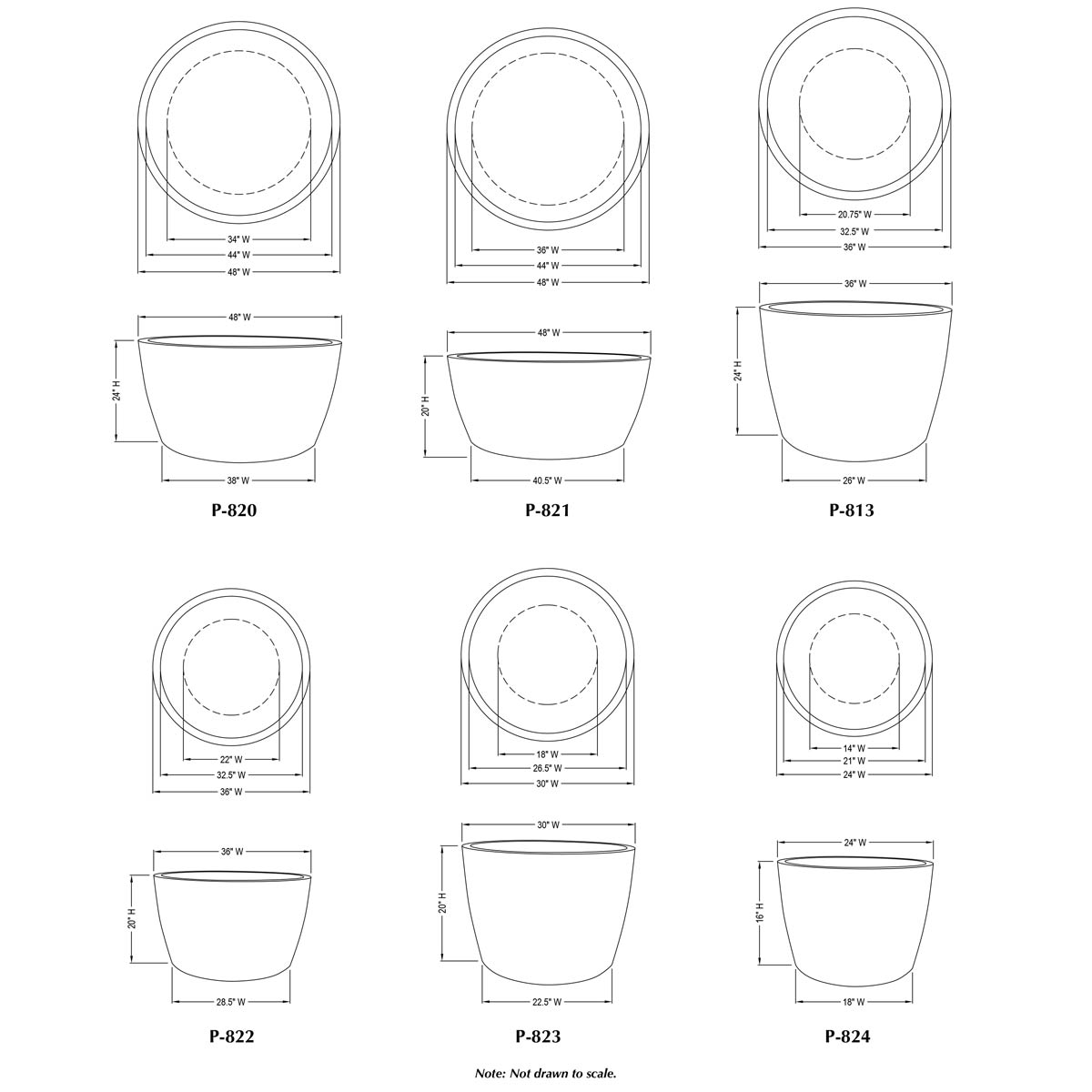 | Size | 48″ DIA x 24″H | 766 lbs 48″ DIA x 20″H | 640 lbs 36″ DIA x 24″H | 465 lbs 36″ DIA x 20″H | 450 lbs 30″ DIA x 20″H | 294 lbs 24″ DIA x 16″H | 170 lbs |