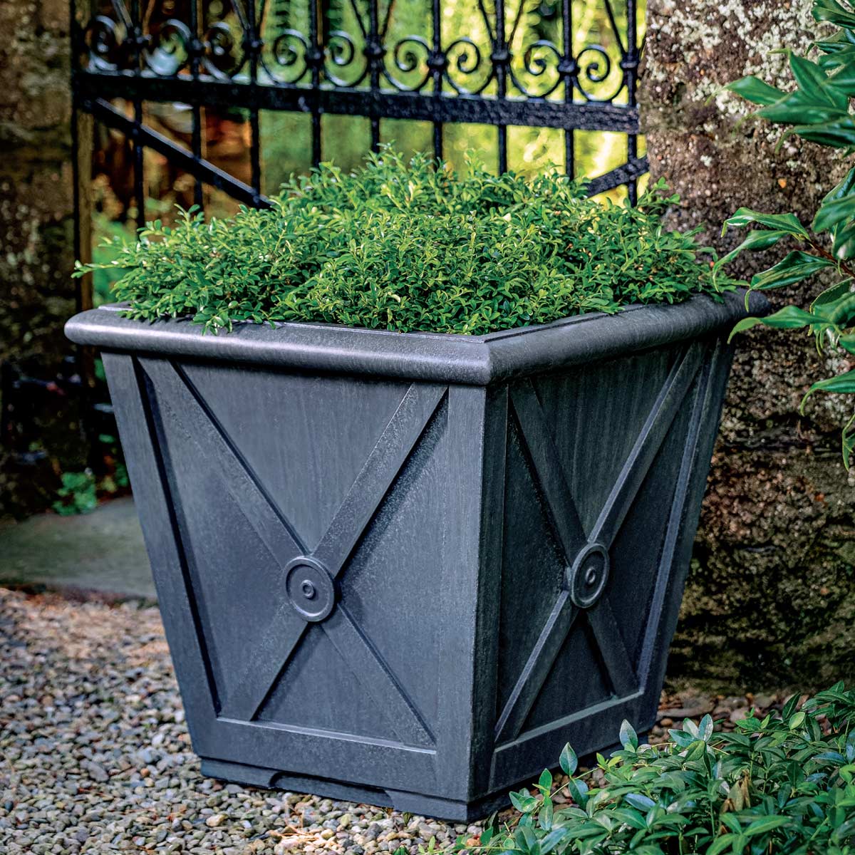A structured look with linear detailing ensures our Directoire Planters add form and function to your outdoor patio space. These square-tapered garden containers come in four sizes and are ideal for medium to deep-rooting shrubs or flowers. Choose from a variety of cast stone finish options, as well as the smaller Directoire Terrace Planters.