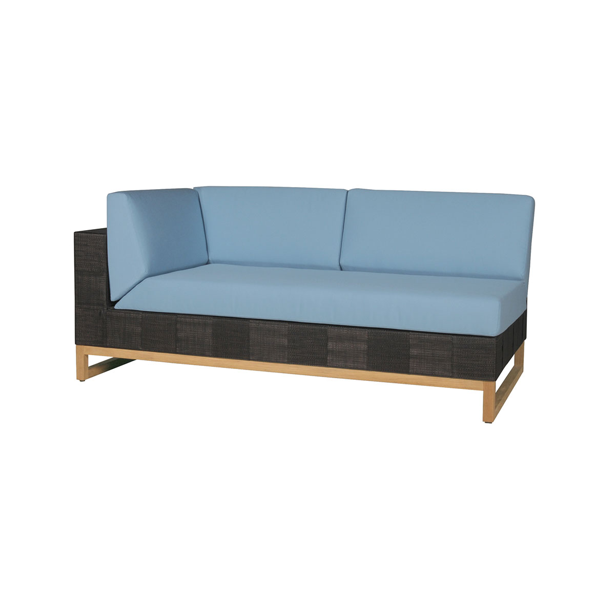 Natural teak wood and minimalist designer style defines the EKKA collection of modern outdoor furniture. The modern EKKA Right Hand Sectional is made of Plantation Teak leg base, with Twitchell Textilene or Batyline Canatex upholstery and Sunbrella Canvas cushions. Combine with other components from the versatile EKKA sectional lounge series to create your own custom seating arrangement for the ultimate in outdoor relaxation.