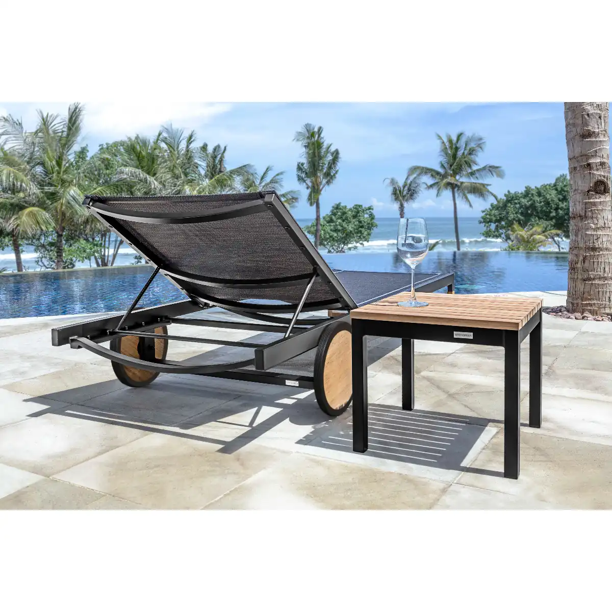 Natural teak wood and minimalist designer style defines the EKKA collection of modern outdoor furniture. The EKKA Small Side Table is made of powder-coated aluminum and plantation teak that is treated with a “teak shield” protective layer. This small square end table pairs perfectly with other pieces in the EKKA series to complete and add a practical element to your outdoor entertaining experience. Also available in a larger size.