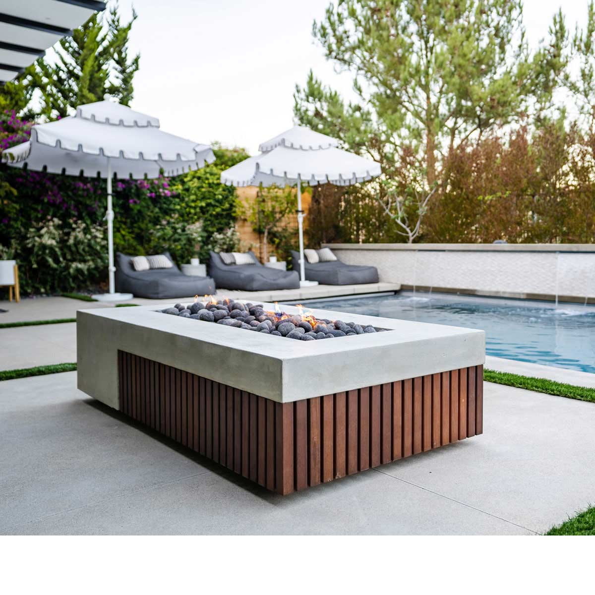 Natural wood accents elevate the Fairmont Fire Table to provide style and ambiance for your outdoor space. Available in six contemporary finish options, each fire feature is hand-crafted with subtle patina variation to guarantee one-of-a-kind creations.