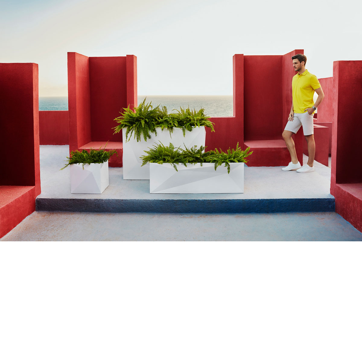 Distinctly modern, the Faz Jardiniere Planter is part of a modular outdoor collection. Its rectangular form is crafted from lightweight yet durable polyethylene resin, and comes in a variety of colors with a matte finish. Also available in high gloss lacuer or with ambient interior LED lighting. *As shown patina: White