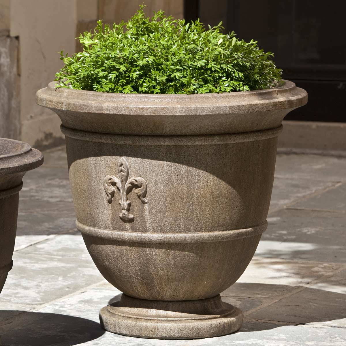 A classic motif enhances the simple silhouette of the Fleur de Lis Large Urn. Crafted from cast stone, in a variety of finish options, this handsome urn is a great all-rounder for your container garden planting needs.