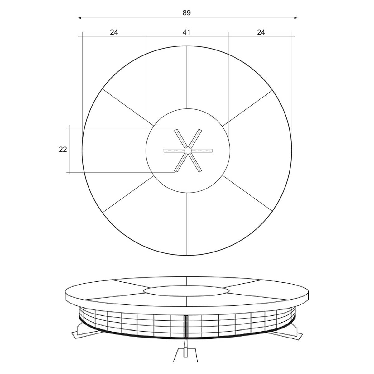 | Size | 89"DIA x 18"H | 1050 lbs |