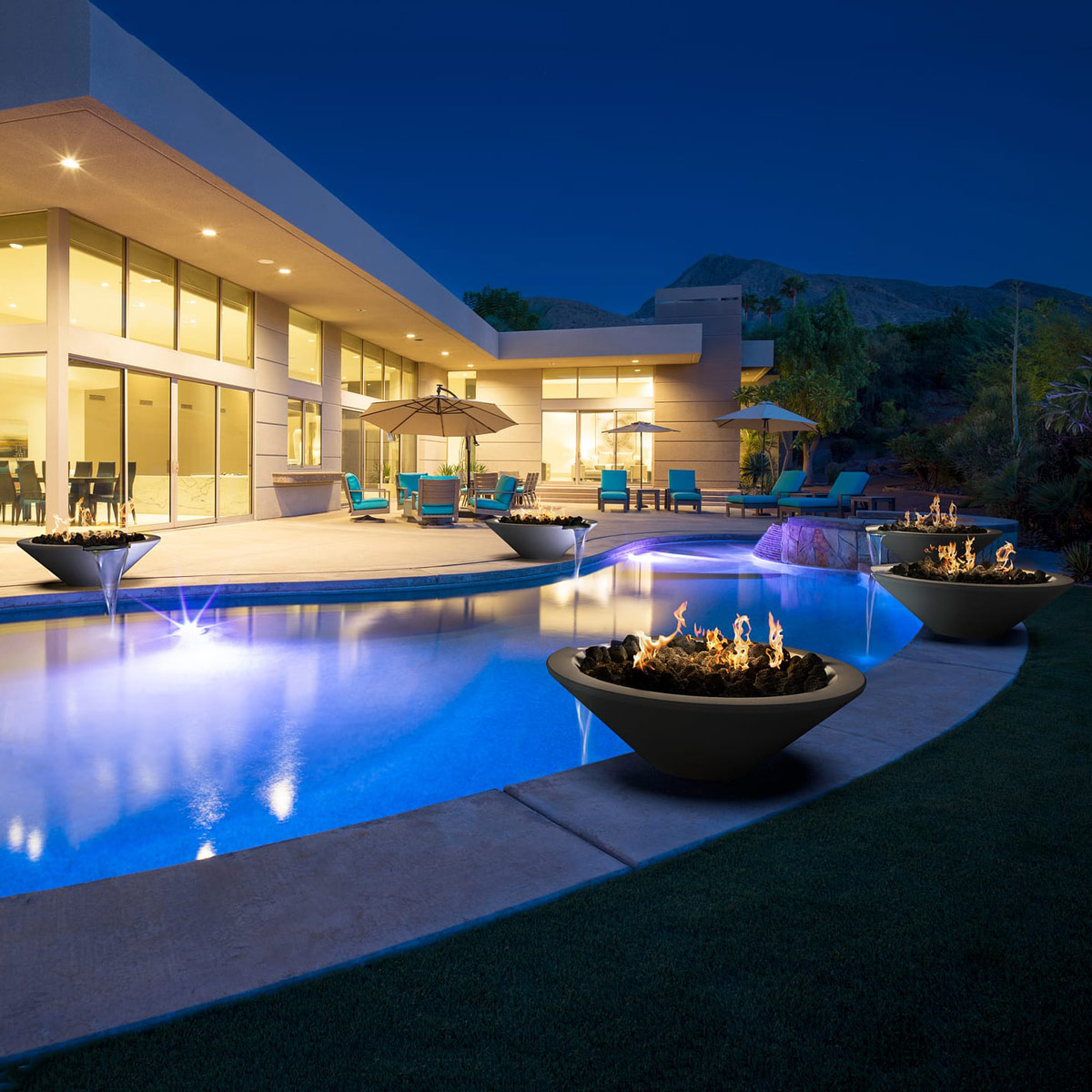 Combine fire and water to make for a rich outdoor experience. The Geo Round Fire and Water Bowl is a great addition to any pool or place where there is a basin.