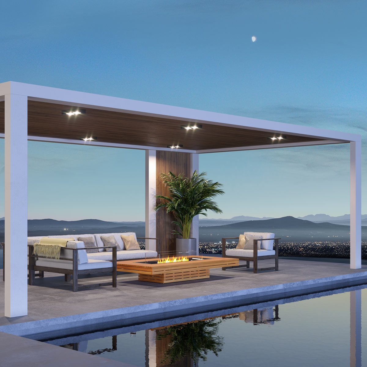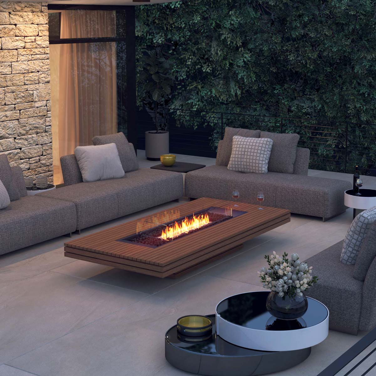 Crafted in four sleek, architectural finishes, the Gin 90 floating centerpiece complements a variety of outdoor styles—from minimalist modern spaces to more natural or coastal-inspired settings. Its broad surface edges provide generous room for placing food, beverages, and decor accents, allowing guests to gather comfortably around the fire.