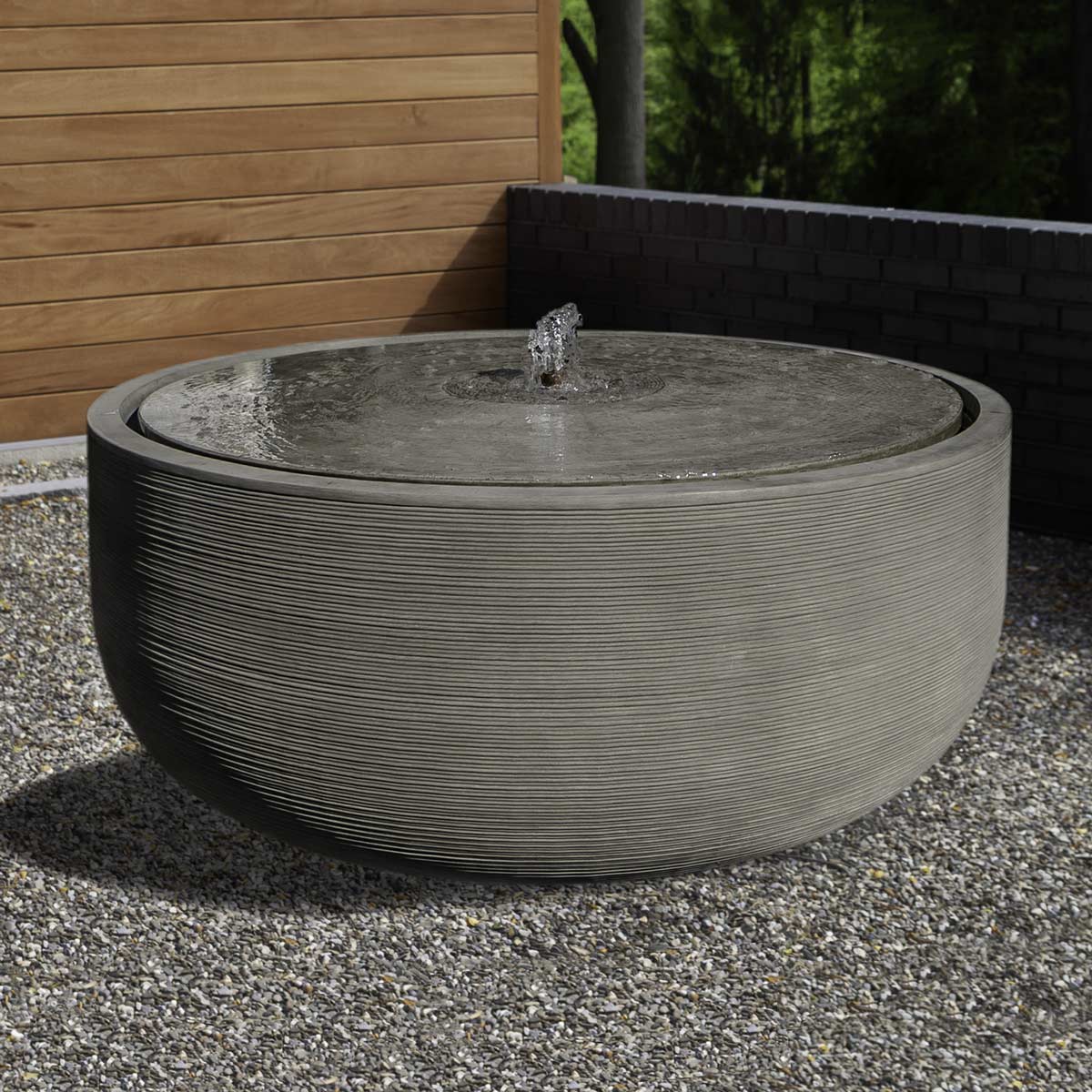 Our large Girona Fountain 6 Foot is a striking accent piece that will bring your outdoor space to life. This bowl shape water feature for gardens has a minimalist design and provides tranquil ambiance. Available in several color finishes as well as 4 foot diameter.