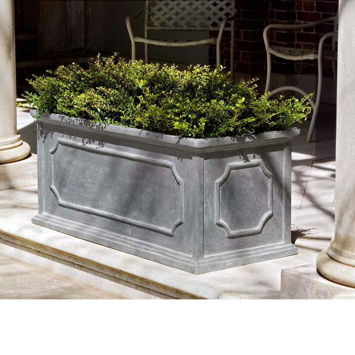 Available in three sizes, as well as a set, the Hampshire Rectangular Planter Boxes come in a timeless lead gray finish. They are made of lightweight fiberglass and work well as a border feature when filled with your favorite planting style. Take a look at the Cumberland Square Planter Boxes or Portsmouth Round Planters for a similar aesthetic.