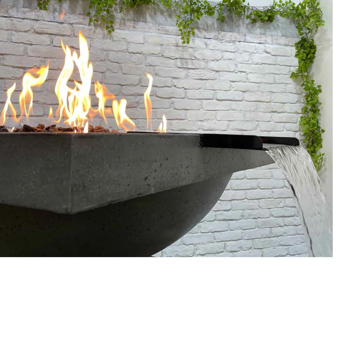 The Ibiza Fire Water Feature offers visual and aural ambiance as a poolside focal point. Available in six contemporary finish options, each piece is hand-crafted to guarantee a one-of-a-kind creation with subtle patina variation.