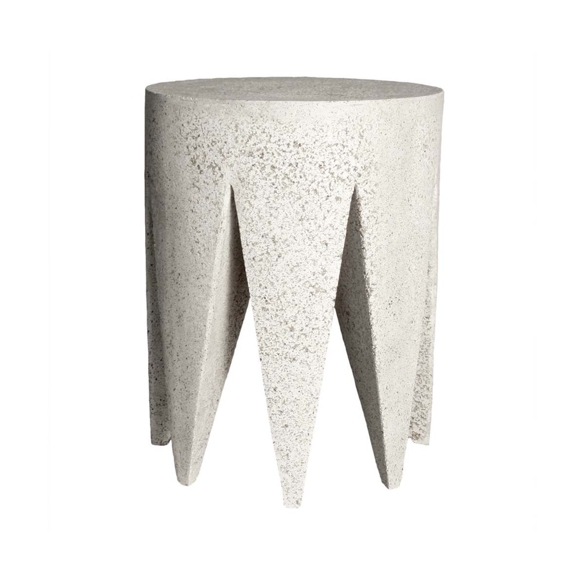 With the sculptural King Me table stool, you can perch or rest your drinks atop an upside down crown. This sculptural outdoor garden piece is crafted with a cement-look, lightweight yet durable, fiberglass resin and aggregate.