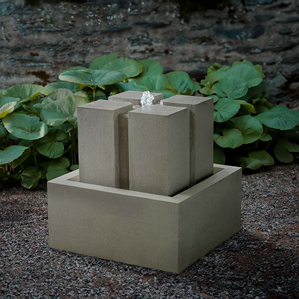 A compact cousin of our Kanal Fountain, the Korsa Fountain shares a similar cubist design—but on a smaller scale—yet adds the same modern flair to outdoor spaces. A central spout emits water that flows around and through its geometric block surface, softening the hard lines while adding a soothing soundscape.