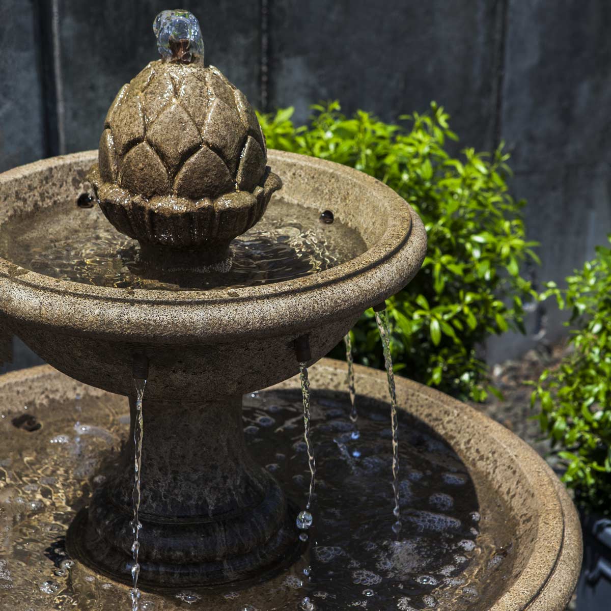 - No plumbing is needed; water recirculates within the fountain