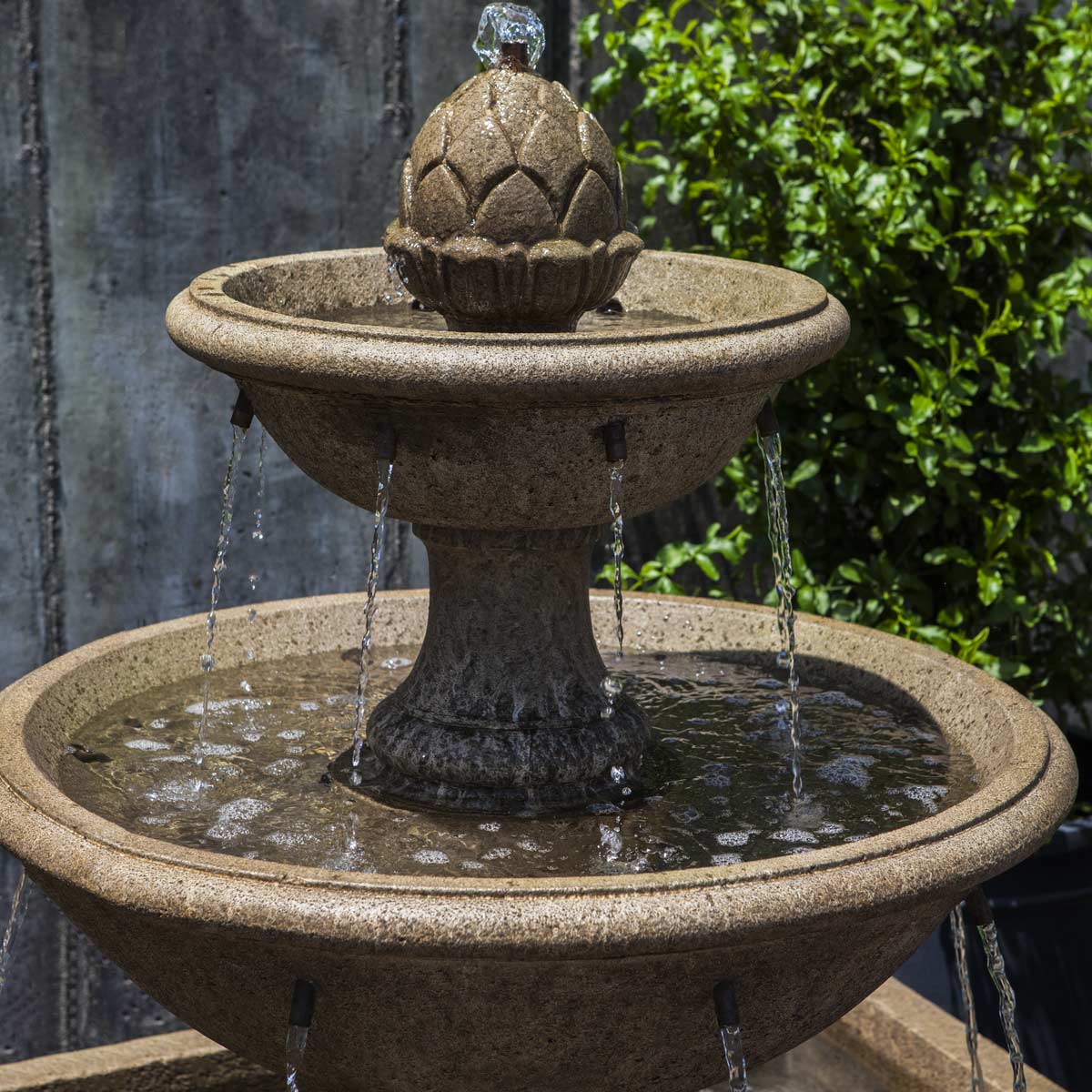 The La Mirande Fountain has multiple copper spout water exit points which means it will provide an interesting, pleasant sound. Made of cast stone, in the USA, it is available in 12 different patinas.