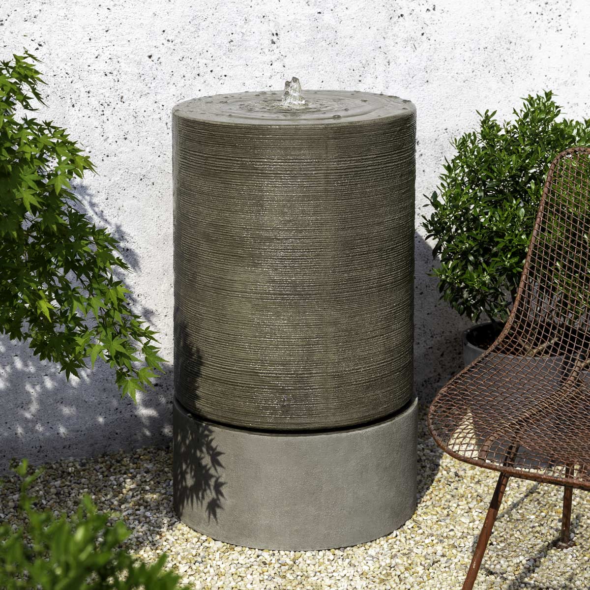 Ideal for smaller gardens, our Large Cylinder Fountain has a smooth pedestal base with a ribbed, textural upper form that water ripples down. It offers a unique sculptural element for outdoor spaces and is available in several color finishes as well as the additional height Tall Cylinder Fountain.