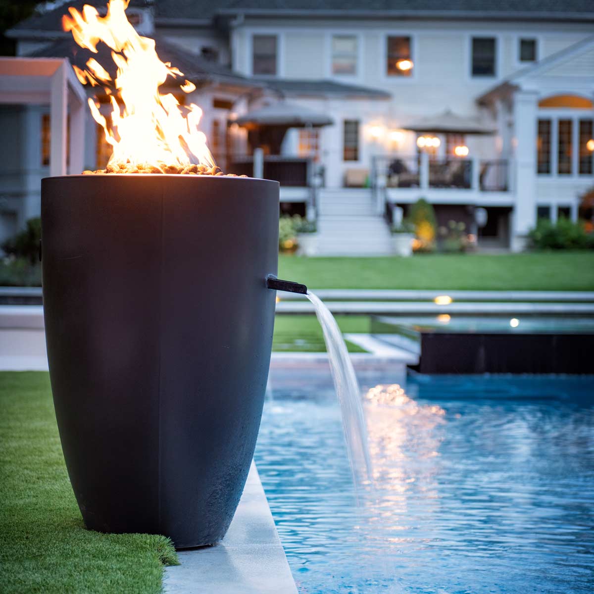The Legacy Round Tall Fire Vase has a beautifully finished narrow shape that combines the elements of fire and water to make a striking accent piece. Combine with other dimension fire features or planters in this series to add a wow factor your outdoor space.