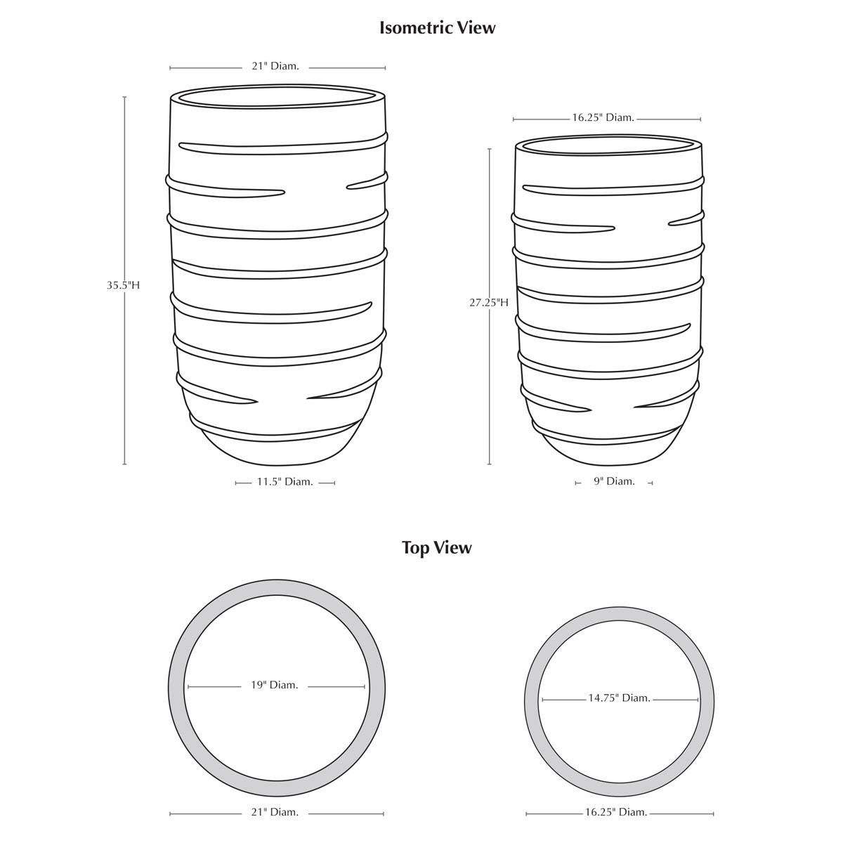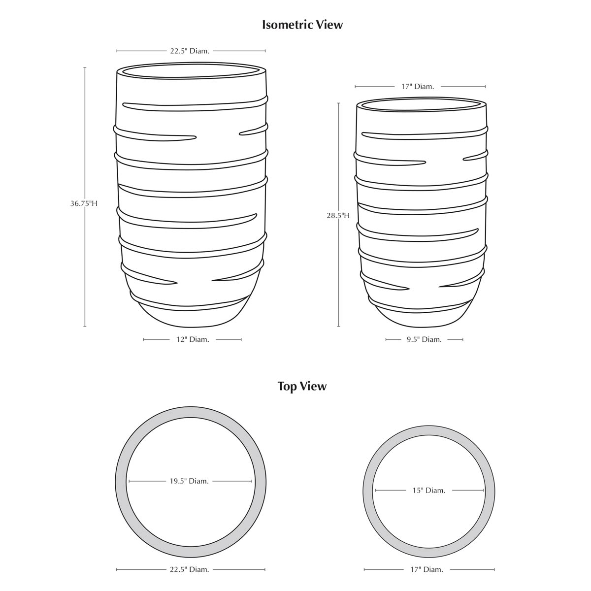 | Size | Set of 2 22.5″DIA x 36.75″H | 1340lbs 17″DIA x 28.5″H | 75 lbs |