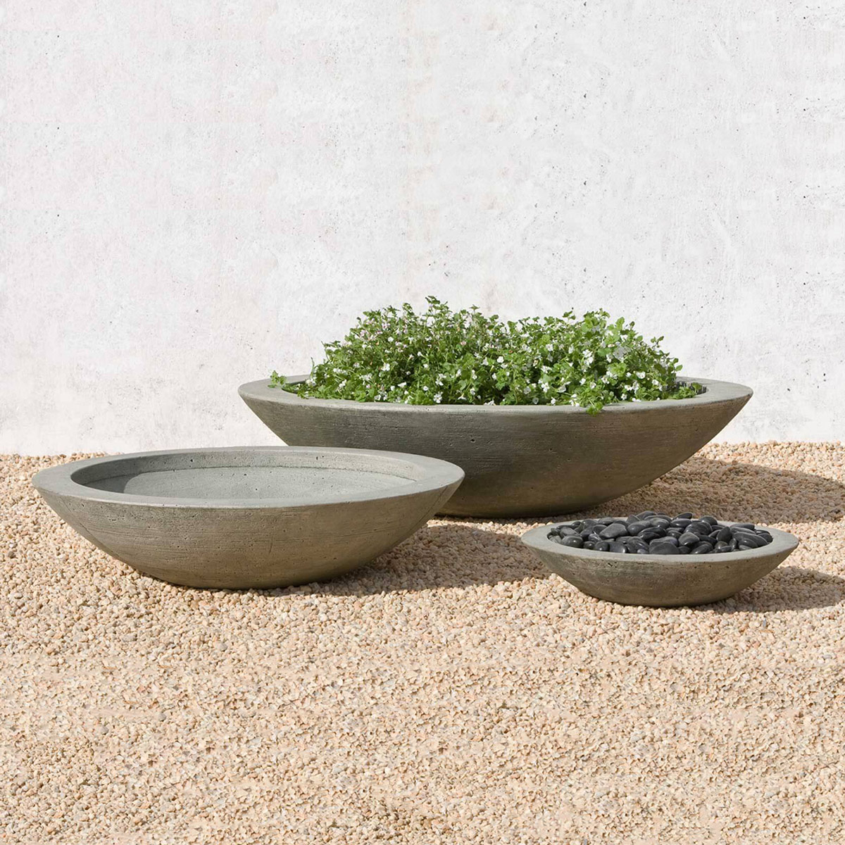 Inspired by the serene beauty of Asian design, our Low Zen Bowl offers a sophisticated look in outdoor spaces. These low-profile cast stone planters come in three sizes and are a perfect home to ornamental specimens or other shallow rooting plants.