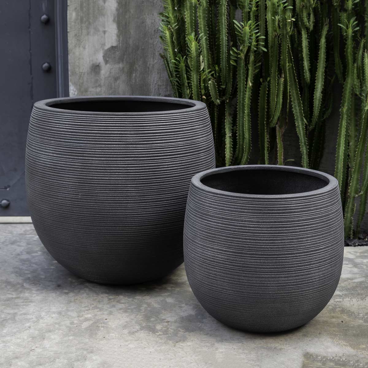 Our reasonably priced Marlton Planters come in two sizes and fiberglass finish options, as well as a set in the same color. Both durable and lightweight, the containers feature a ribbed pattern to accentuate their pleasing round shapes. They are a versatile option for many different planting styles including small shrubs, flowers or cascading foliage.