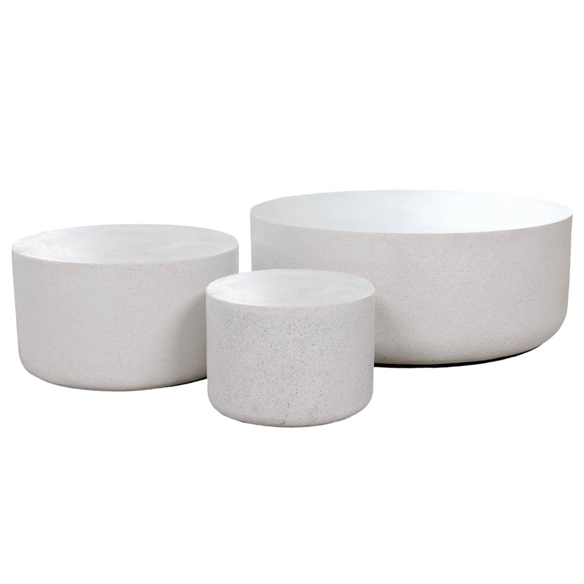 Featuring simplistic forms that marry a subtle aesthetic with practical form, place one or more Mill Stone Cocktail Tables in your outdoor space for an attractive garden accent. These modern pieces are handcrafted from cement-look fiberglass resin and aggregate, come in 4 sizes, with 5 finish options.