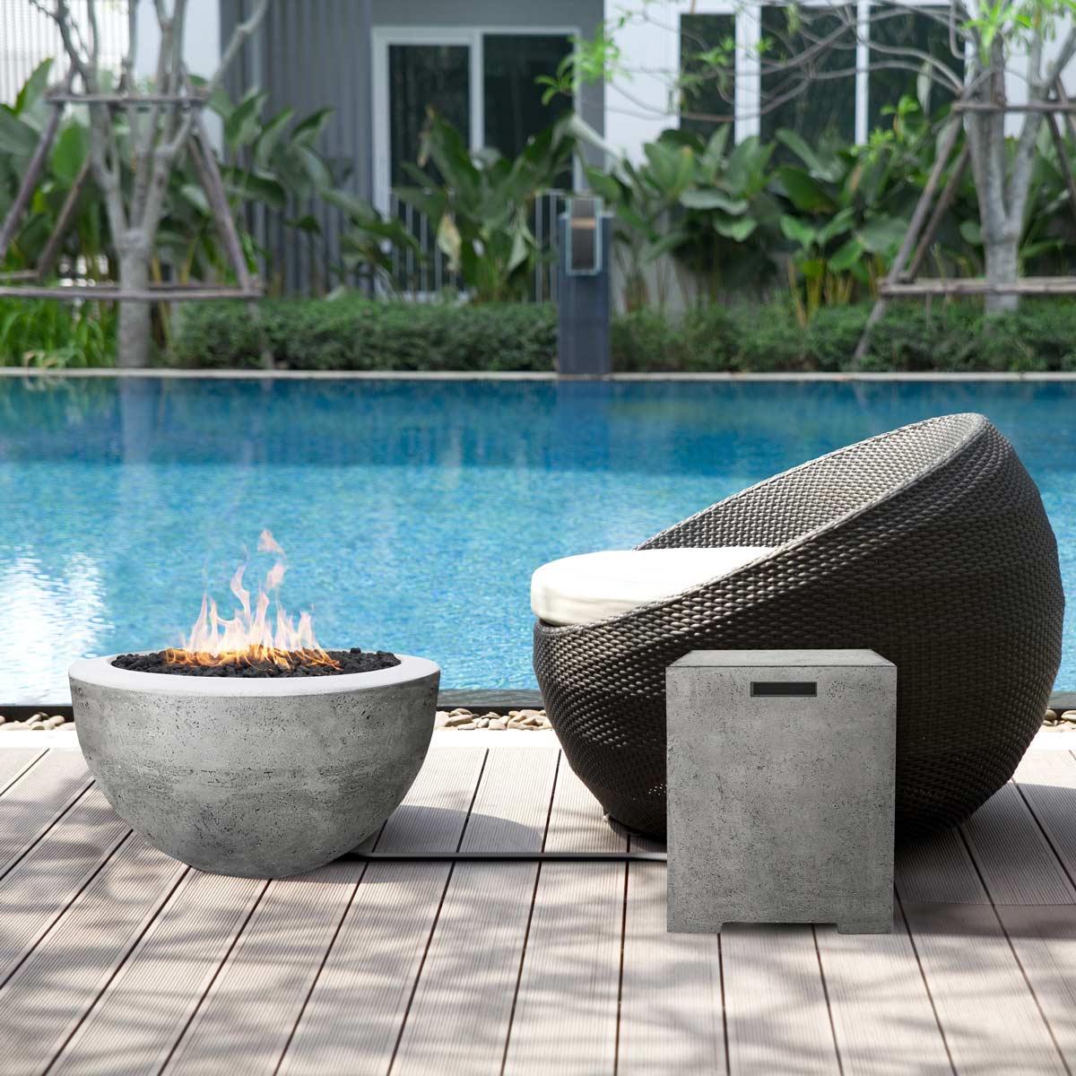 The Moderno 3 Fire Pit offers warmth and ambiance as an elegant and modern feature piece for smaller outdoor living areas. The Moderno Fire Feature series’ rounded bowl shapes come in five contemporary colors to suit your style and space. These GFRC fire features are hand-crafted using a custom patina finishing process that guarantees each piece is a one-of-a-kind creation with subtle variation.