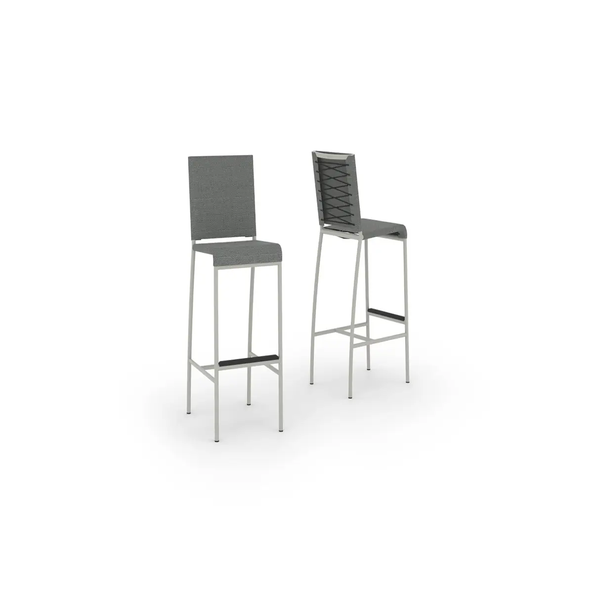 NATUN furniture collection showcases ultra-modern design with high-end finishing. Colorful and creative, this outdoor NATUN Bar Chair is made from a stainless steel frame and Batyline mesh back/seat slings with corset-detailing. Pair with your favorite bar height table for a fresh and contemporary dining experienc