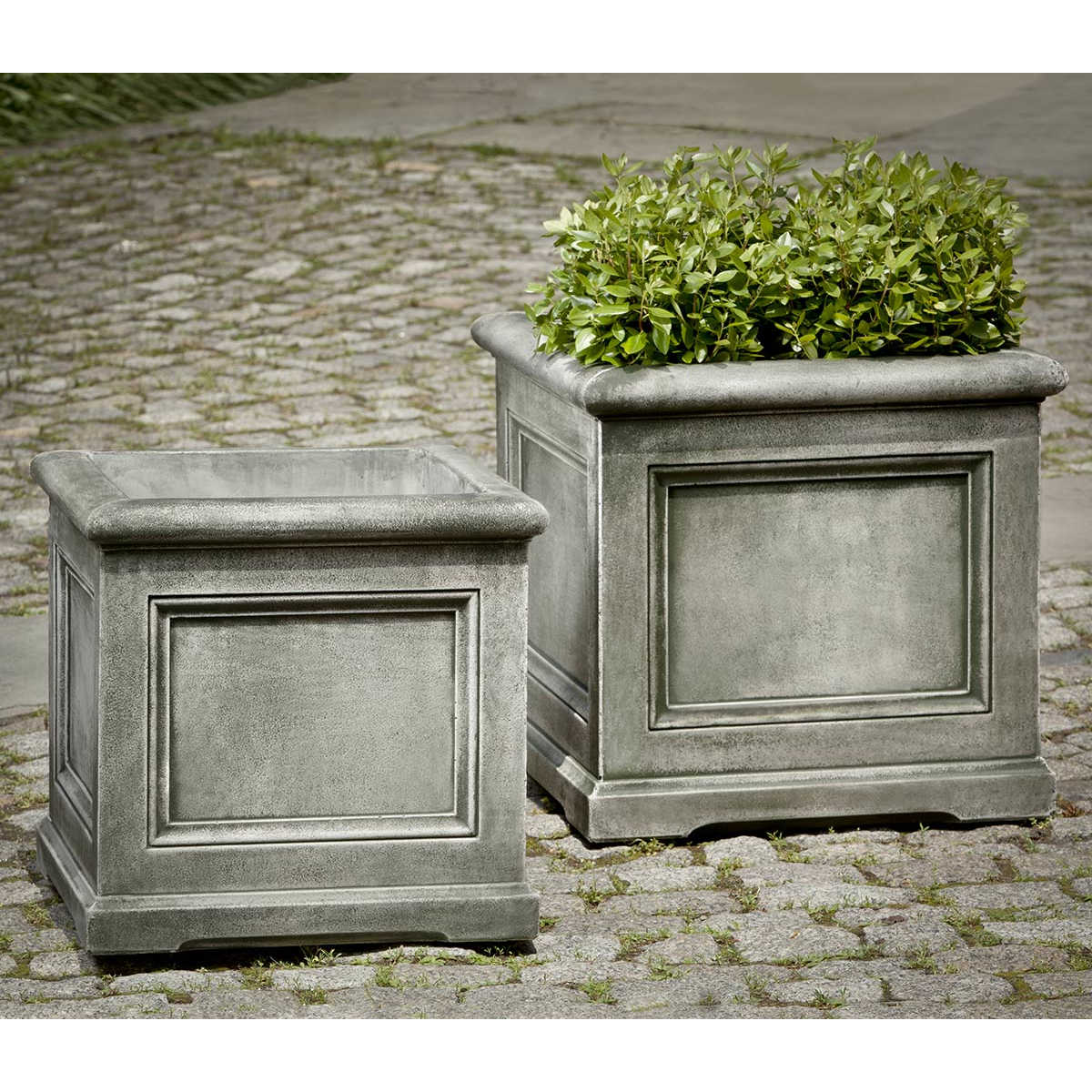 Available in two sizes as well as rectangular window boxes, the Orleans Planters have a weathered-look patina that softens the look of the classic box design. They are crafted from cast stone, in a variety of finish options, and can be used to punctuate an entry path or to define outdoor areas.