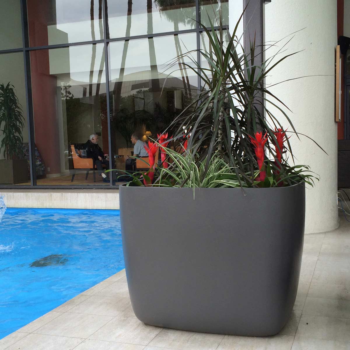 A ‘relaxed’ cube shape, the gentle curves of Osaka planter collection are easy on the eye. The Osaka Container pairs the advantages of a trough style planter with the elegance of tapered sides and rounded corners. The X-Large Osaka planters are perfect for deep rooted trees and plants. While the smaller versions pair well with slightly smaller root systems.