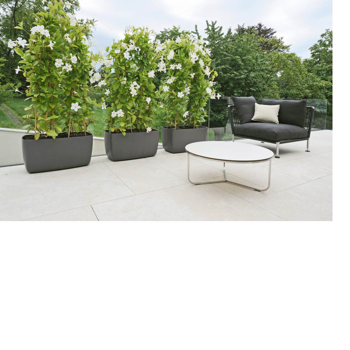 Products are made of natural, durable, recyclable, lightweight fiber cement. Manufactured in Switzerland. Each product is hand formed and signed by individual artisans. Modern design in a timeless and enduring material. These outdoor pieces possess an exceptional strength-to-weight ratio, making them suitable for a wide range of environments‚ from weight-restricted roof terraces to interiors, to public spaces. Even the largest sizes are easy to handle.
