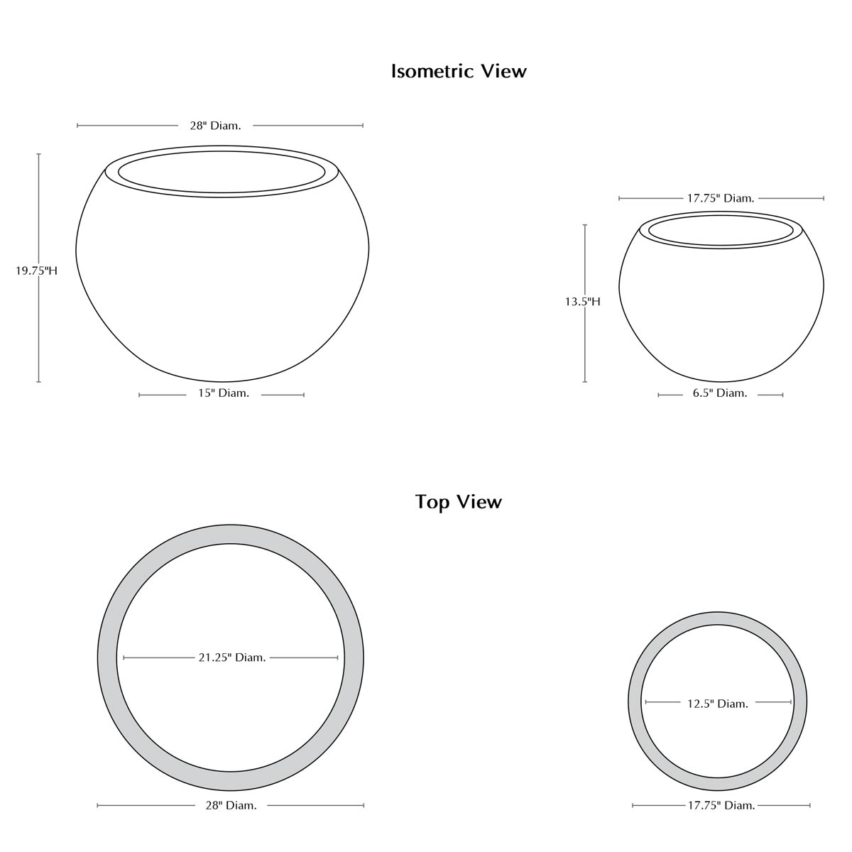 | Size | Set of 2 28"DIA x 19.75"H | 82 lbs 17.75"DIA x 13.5"H | 29 lbs |
