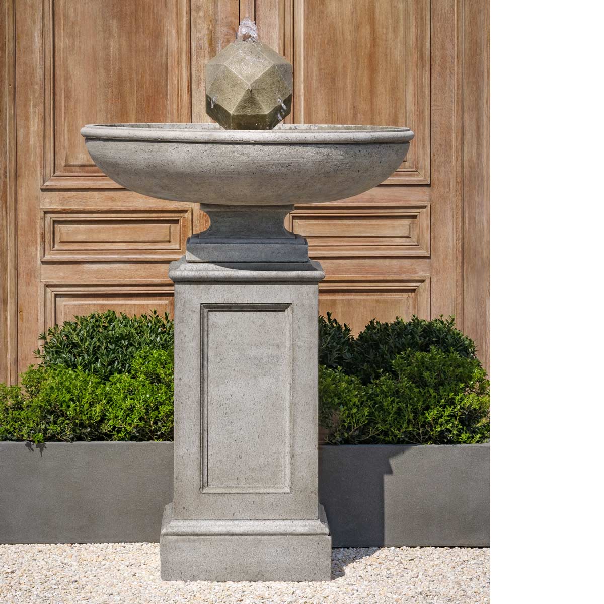 A multifaceted finial spiller is the focal point of the Polyhedron Fountain, creating a unique pedestal water feature for your outdoor space. Crafted from cast stone, it comes in a variety of finish options. Continue the geometric accent theme by pairing it with the Polyhedron Bench.