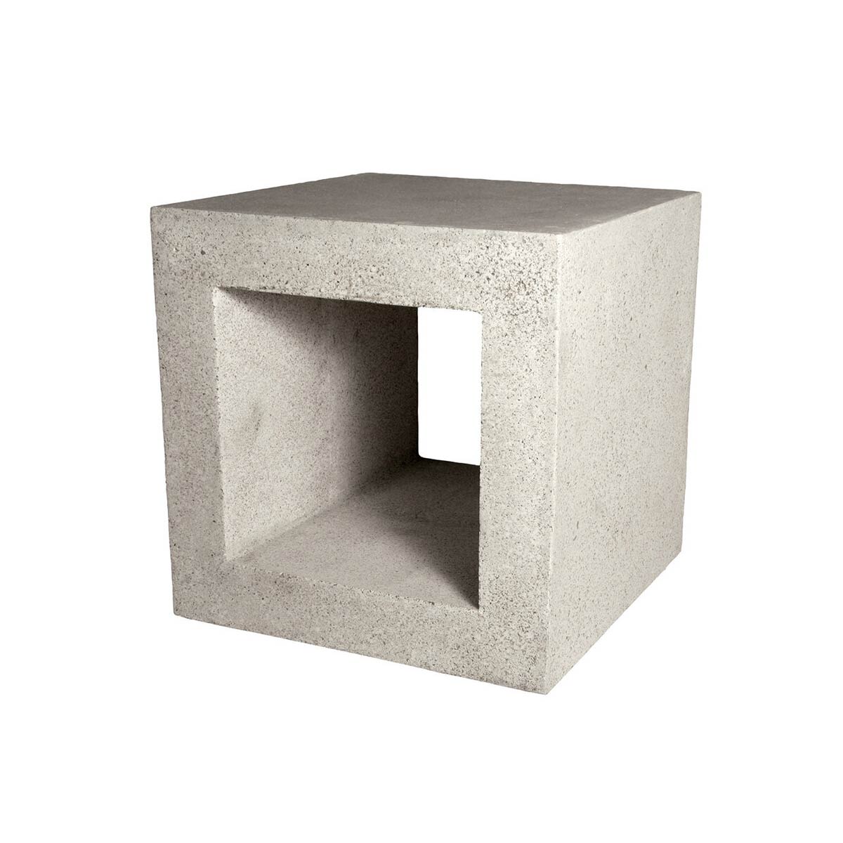 Outdoor furniture at its most minimal, the Ray Side Tables feature open block forms that create functional pieces for al fresco entertaining. They are handcrafted in cement-look fiberglass resin and aggregate, which is both lightweight and durable, and come in 16″ or 24″ cubes with 5 finish options.